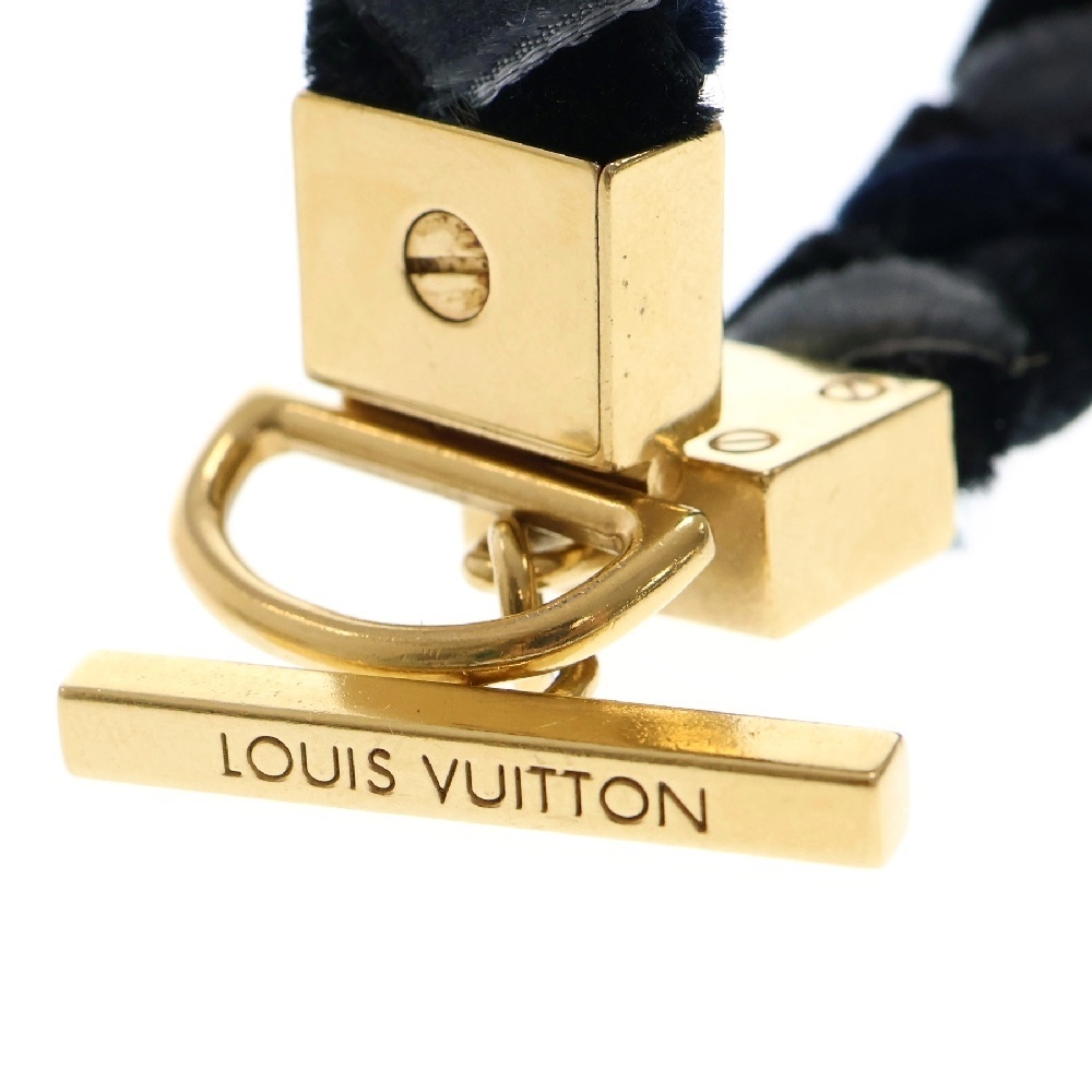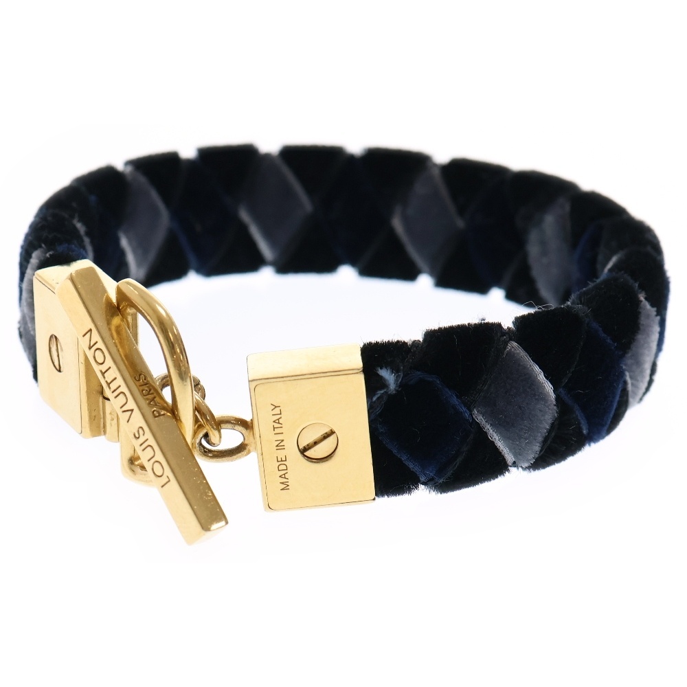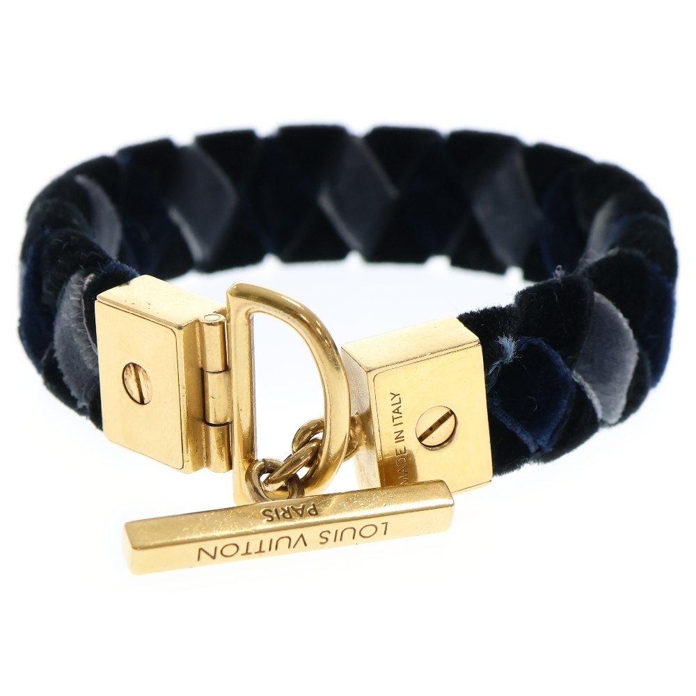 LOUIS VUITTON (ルイヴィトン) ロゴ刻印 ブレスレット ネイビーブルーxブラック ベロア バングル ゴールド金具