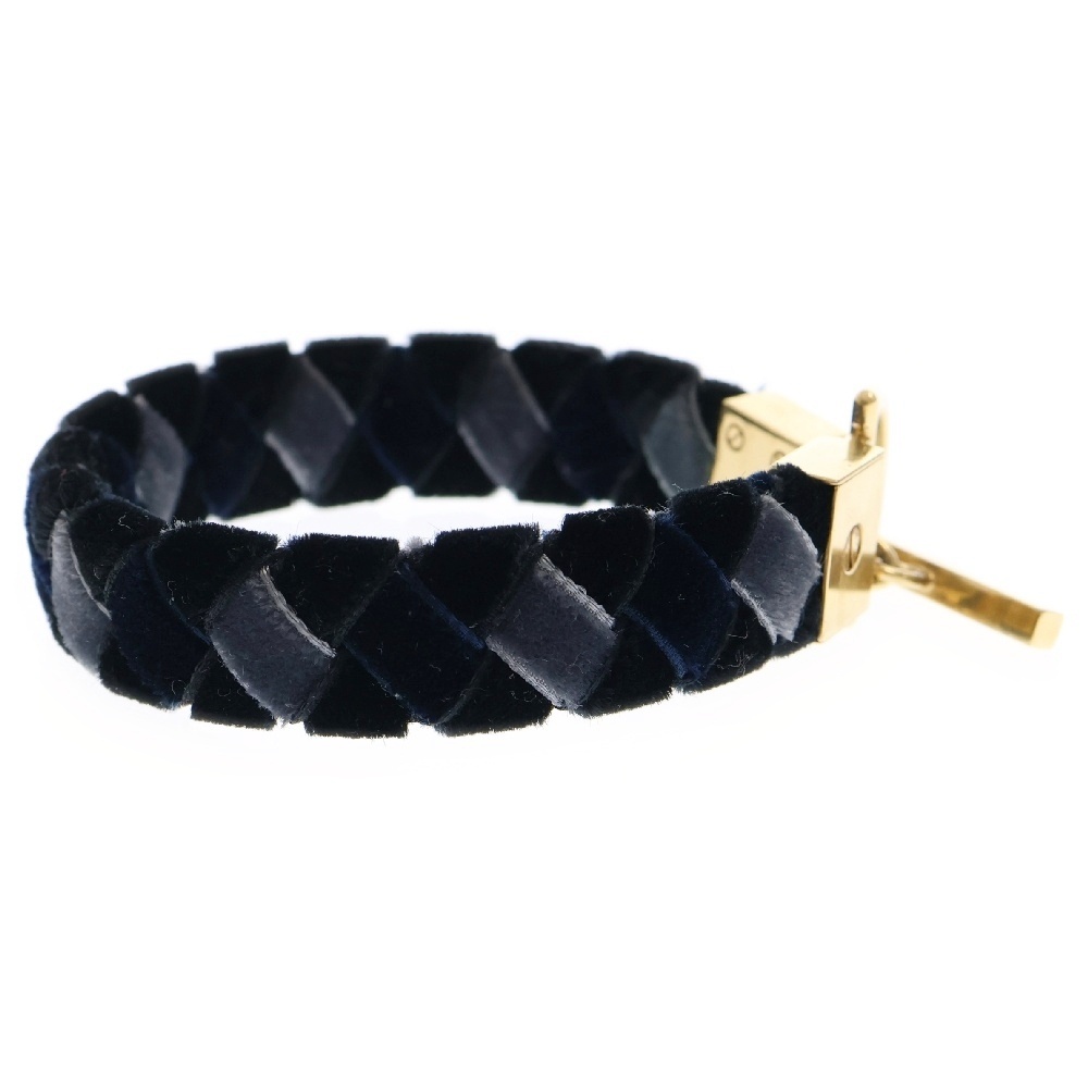 品名ロゴ刻印 ブレスレット ネイビーブルーxブラック ベロア バングル ゴールド金具
