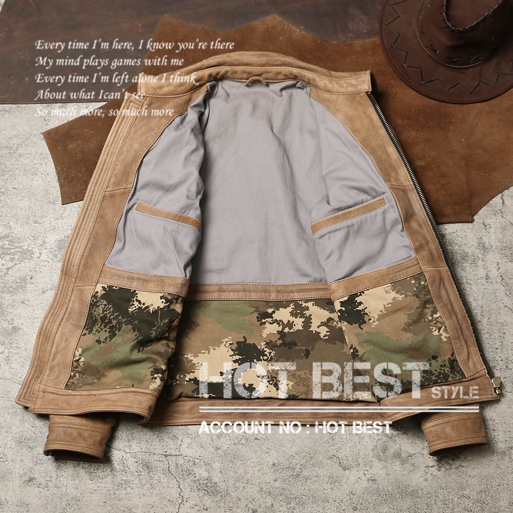 1.1mm カウハイド 復刻50'スタイル サファリジャケット M65 ギフト メンズ 革ジャン 染料仕上げ イタリアンレザー 牛革 Y1800/Mサイズ選択可 落札後にご希望のサイズを取引ナビでお知らせください