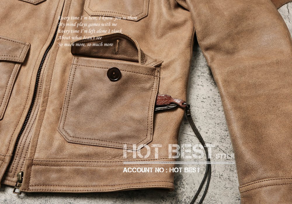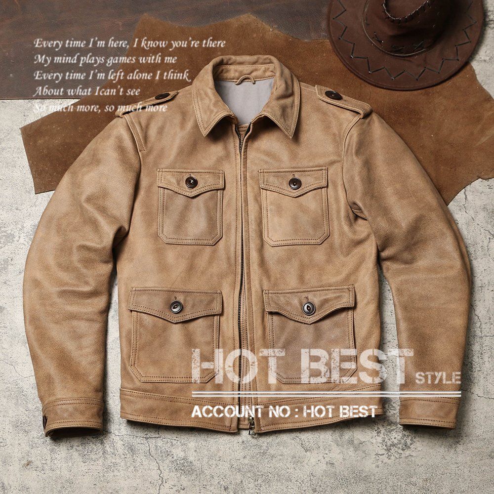 1.1mm カウハイド 復刻50'スタイル サファリジャケット M65ギフト メンズ 革ジャン 染料仕上げ イタリアンレザー 牛革 Y1800/Mサイズ選択可