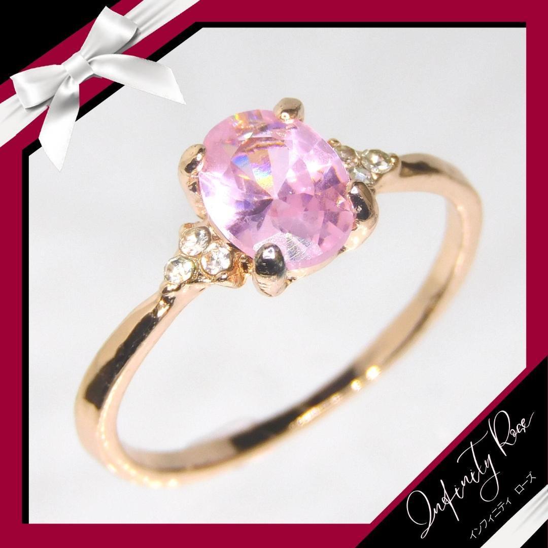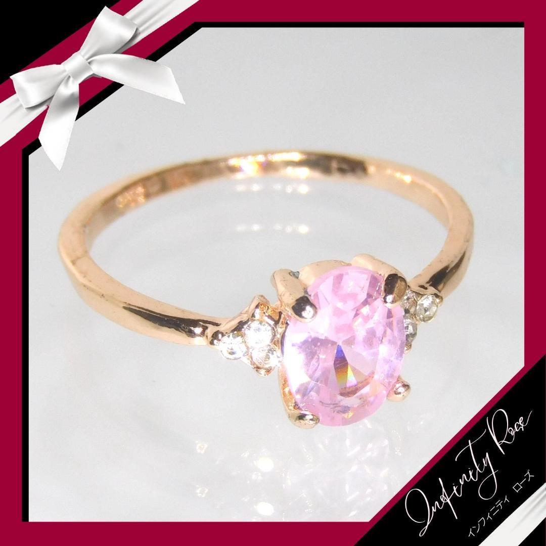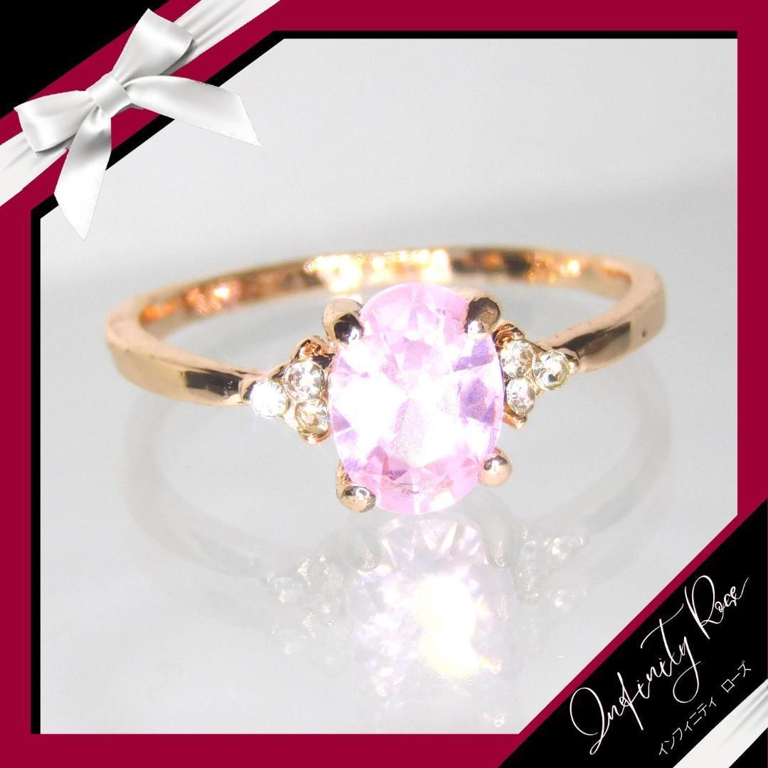 #ピンクゴールドピンククリスタル可愛い姫リング