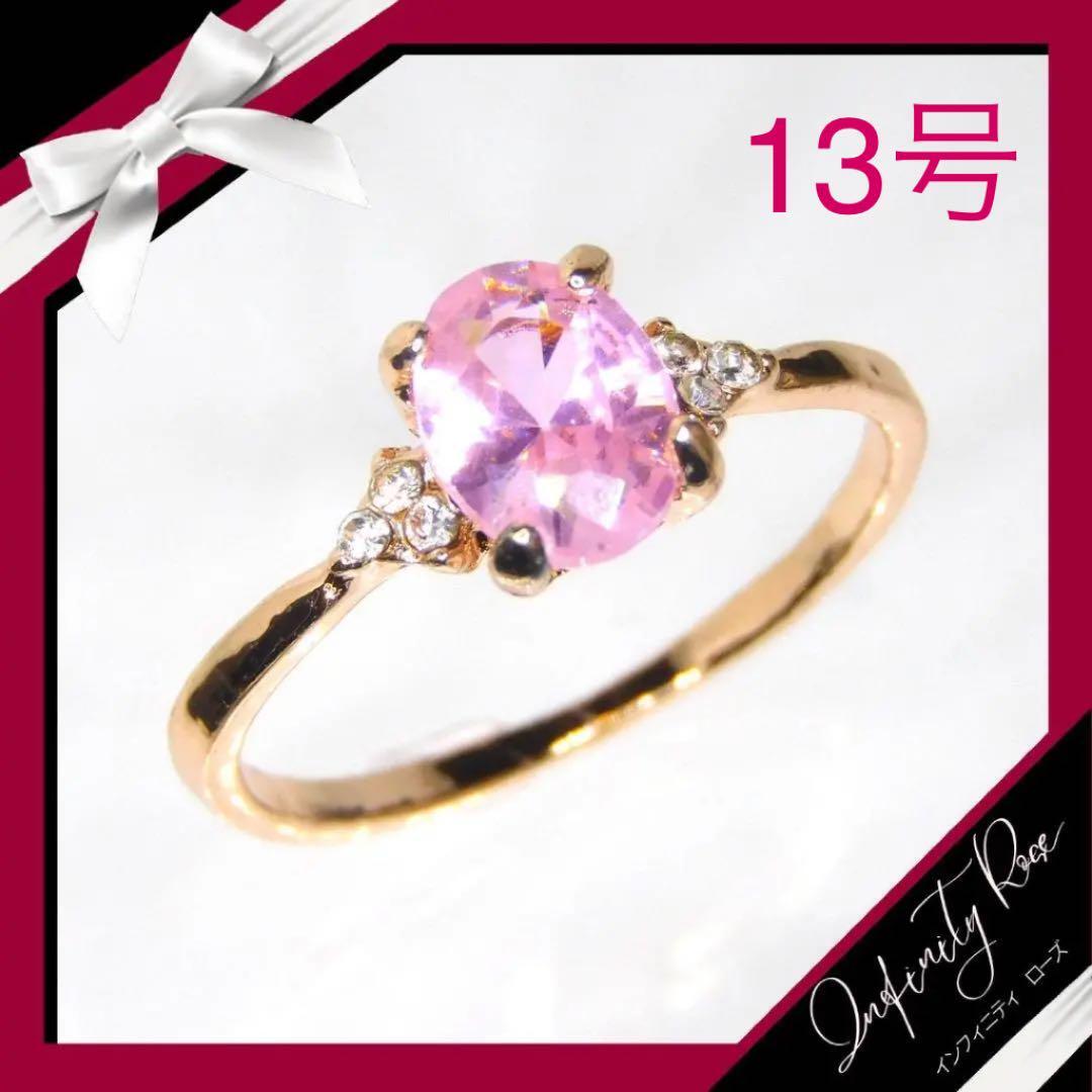 (1054)13号 ピンクゴールドピンククリスタル可愛い姫リング 指輪