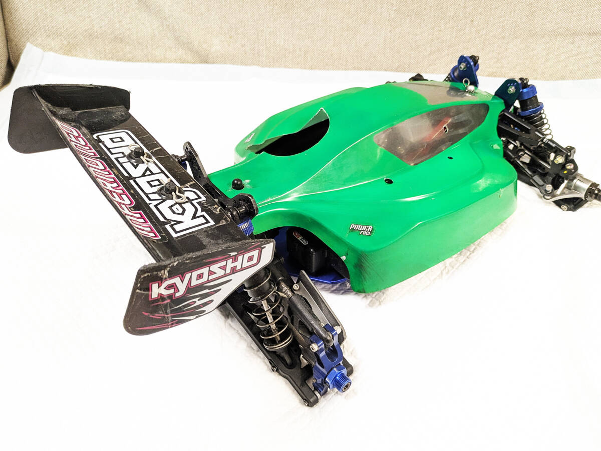 ●中古車を全バラし全て洗浄、ビス類交換、ベアリングもベアリングもゴリついてたのは新品交換しつつ組立ててあります。 ●デフも分解・洗浄後に新品ガスケット+新品Oリング組付けてオイルを入れてあります。 ●センターフロント&リアにOPアルミパーツ組込済み ●ショックも洗浄後にOリング新品にして組んであります。 ●サスアームなど傷があったプラパーツは新品交換済み。 ●ボディ+ウイングは傷+割れ多々のオマケ程度とお考え下さい 発送の際はウイングを梱包を小さくする為外して入れておきます ■上記レストア後に芝の広場を10分程試運転し、エンジン下ろしたままの状態での出品です。 その為汚れなどございますのでご了承下さい。 ●写真の物がすべてです。欠品や不具合の保証一切致しません。 |