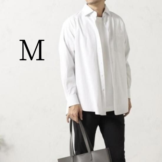 メンズ レギュラーフィット ワイドカラー M ホワイト シャツ