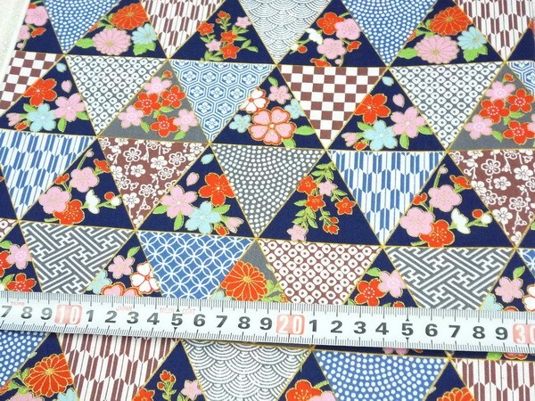 100*97★紺地・花・和柄の・ハギレ・生地・布★0519-83