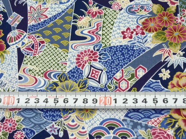 100*97★ブルー・花・和柄の・ハギレ・生地・布★0519-63