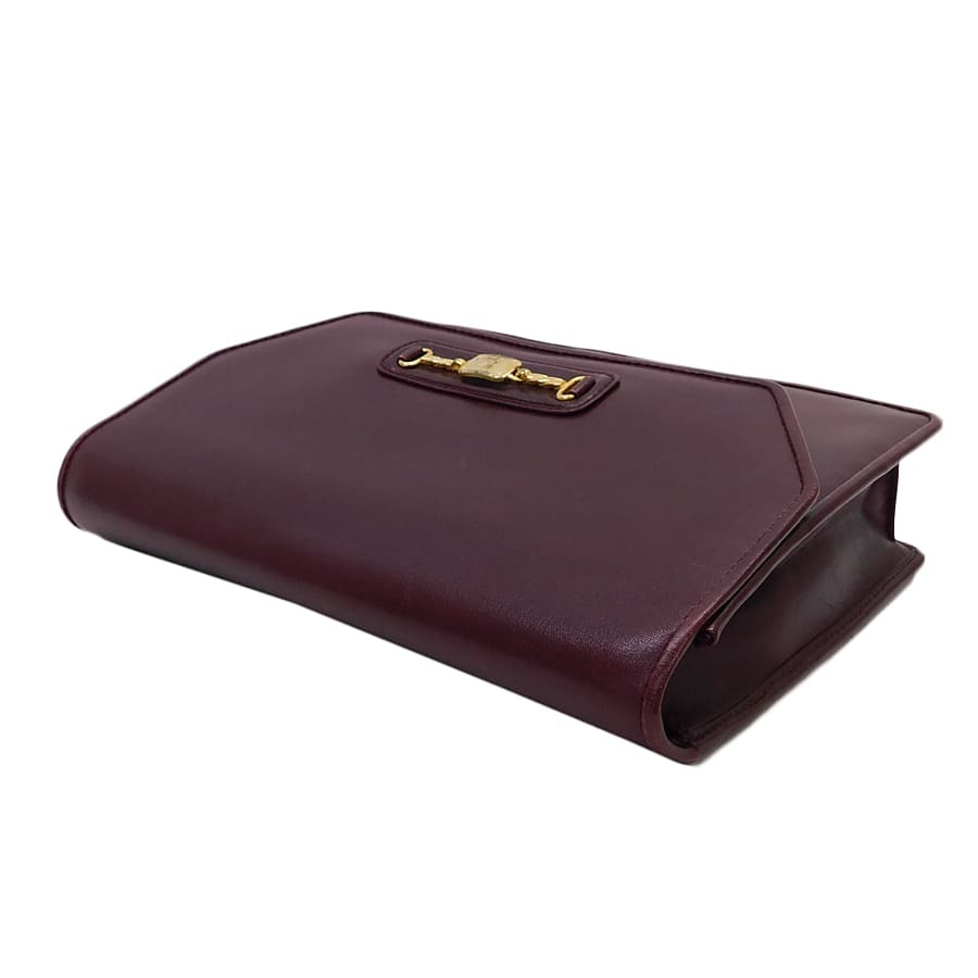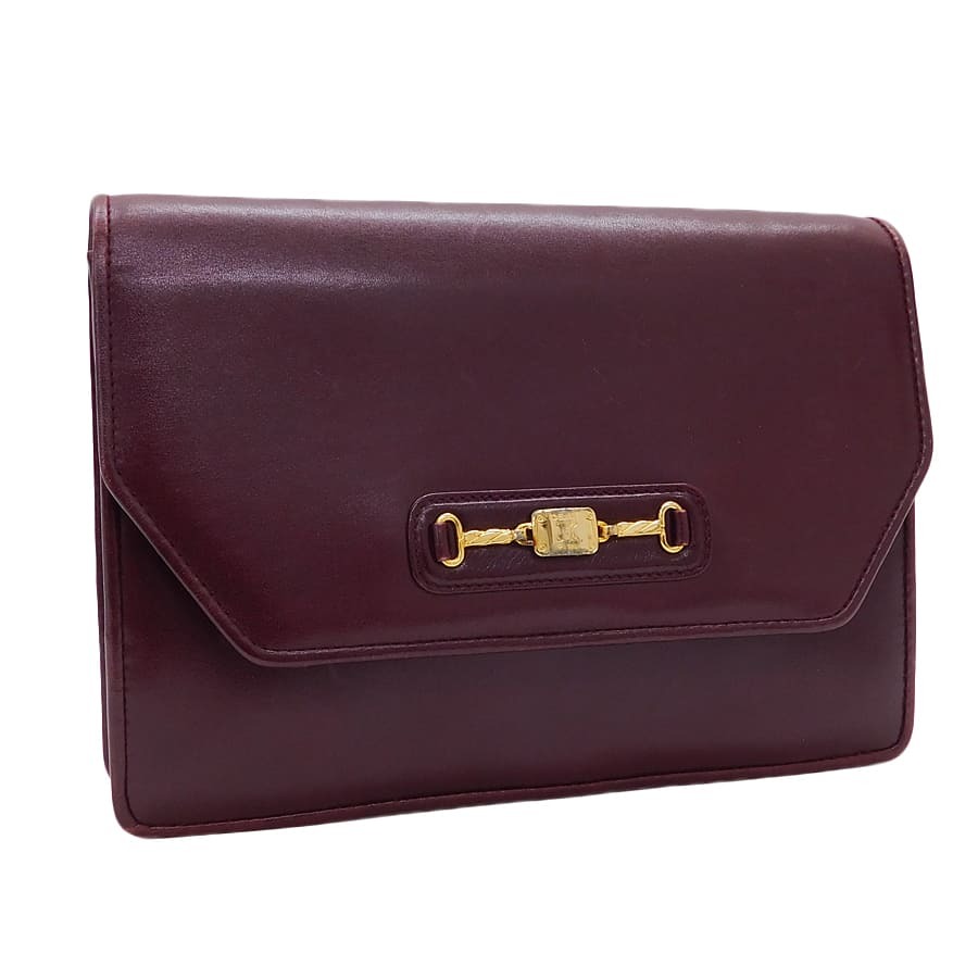 1円■美品/セリーヌ/クラッチバッグ/ボルドー系/レザー/レディース/おでかけ/シンプル/CELINE ■E.Ber.tI-24[中古]