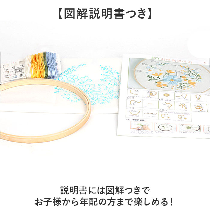 商品説明 | ・・【気軽にはじめられるキット☆】 ・ボタニカルで可愛らしいデザインが完成する、刺繍キット 花 が登場。 ・【これ1つではじめられる!】 ・刺繍布(図案印刷済)、刺繍枠、刺繍糸、刺繍用針がセットなので、お手軽にスタートできる! ・【基本的なステッチで完成】 ・初心者の方にも安心の、基本的なステッチだけで完成する構成。練習用にも最適◎ ・【日本語版の説明書つき】 ・日本語表記の説明書には丁寧な図を記載。お子様から年配の方まで楽しめる! ・【飾り方はアナタ次第☆】 ・付属の枠を使用してディスプレイするのはもちろん、フォトフレームに入れるのもGOOD! ・【ナチュラルフラワーのラインナップ】 ・どのデザインもほっこりナチュラル♪お気に入りをチョイスして。 |