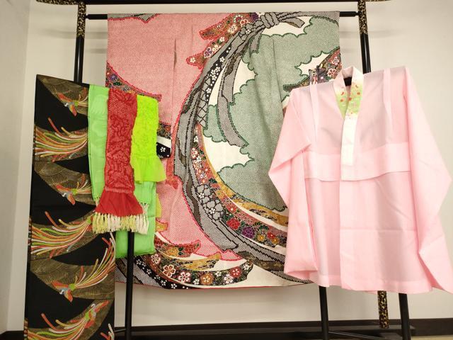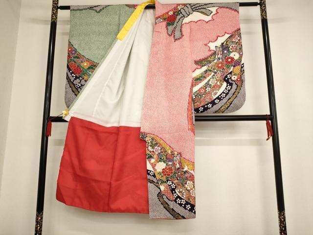 【祝着】 身丈 136cm(肩から) 裄丈 56.5cm(肩上げ 1cm) 袖丈 75.5cm 縫込み 3cm 袖幅 33cm 前幅 18.5cm 後幅 26cm 着物縫いこみ 内揚げ 0cm (腰上げ 0cm) 裄 お袖側 約1.5cm 身頃側 約0cm 【長襦袢】 身丈 81cm(肩から) 裄丈 51.5cm(肩上げ 2cm) 袖丈 71cm 縫込み 2.5cm 袖幅 30.5cm 前幅 30.5cm 後幅 25.5cm 着物縫いこみ 内揚げ 0cm (腰上げ 10cm) 裄 お袖側 約4cm 身頃側 約0cm 【帯】 長さ398cm 幅 28cm程 《 サイズについてはこちら 》 |