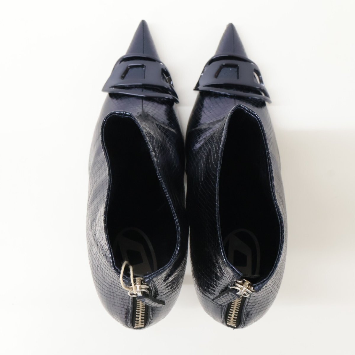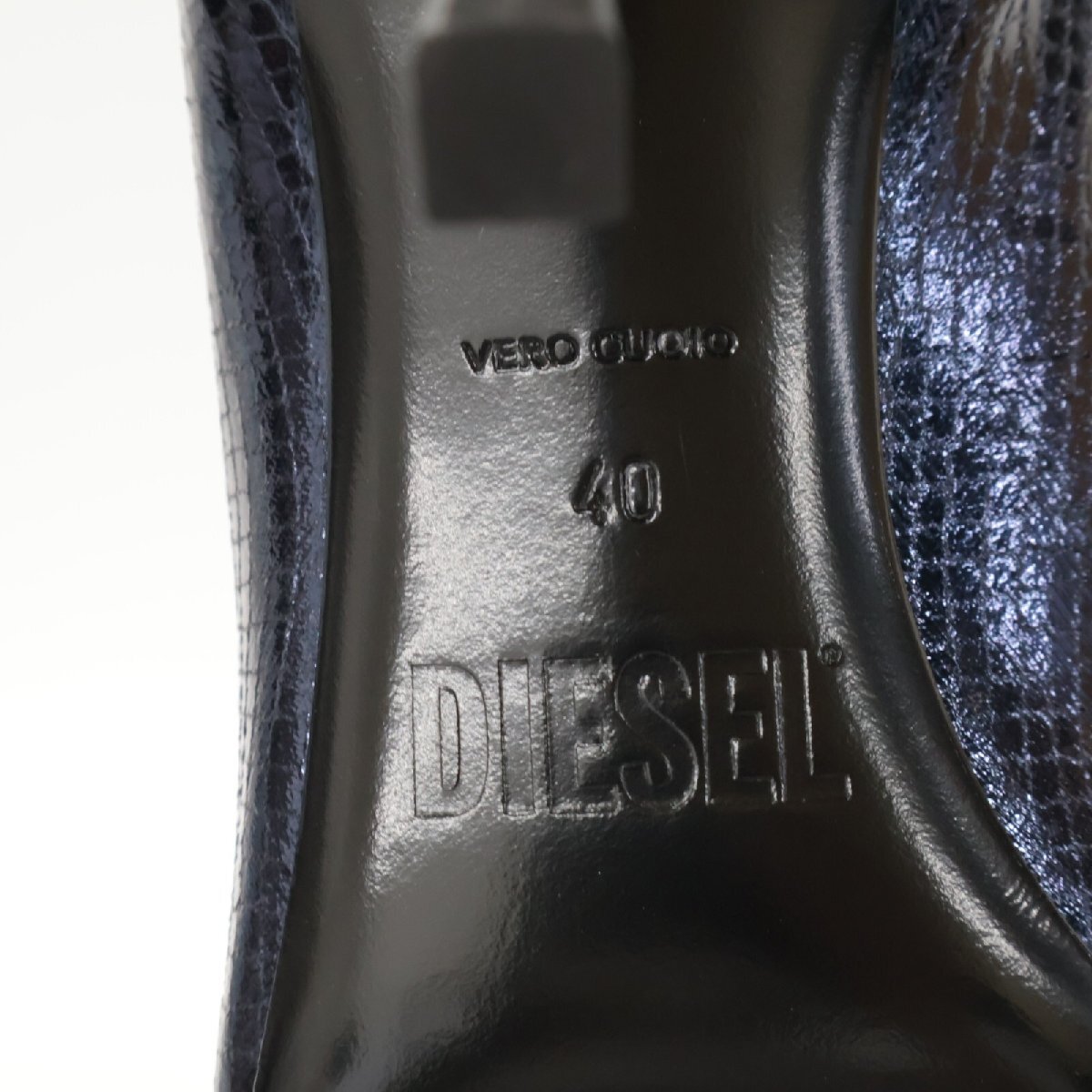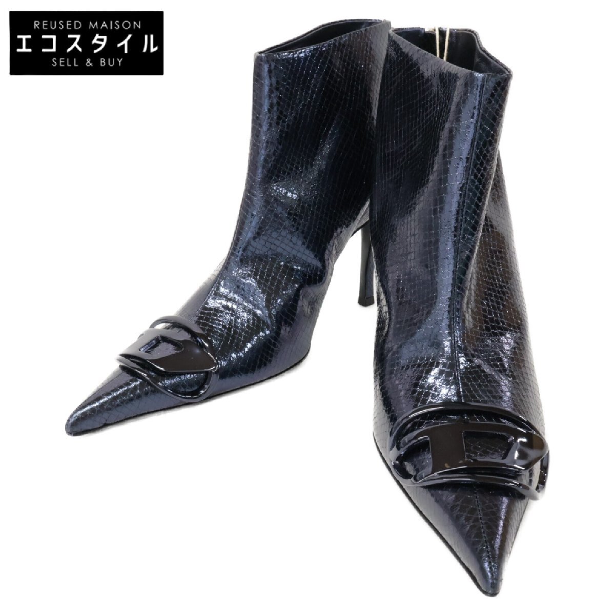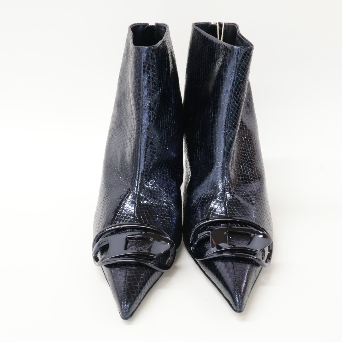 美品 DIESEL ディーゼル Y03323 P6356 T6067 D-VENUS AB 型押し ポインテッドトゥ ブーツ 40 indigo レディース