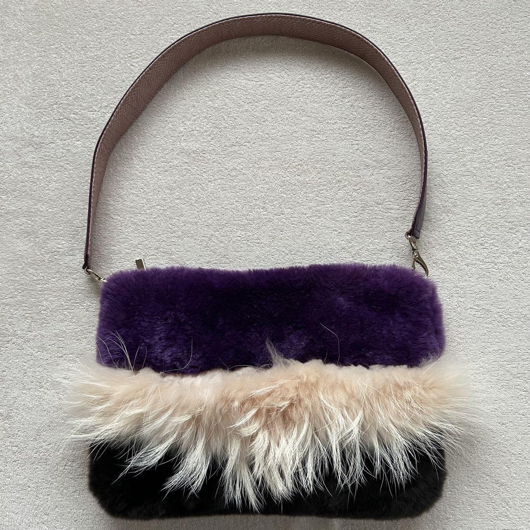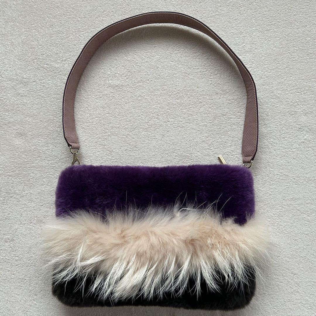 配色が魅力のファーバッグです。毛質の違うレッキスラビットとチャイニーズラクーンリアルファーを使用し、ふわふわの手触りに加え秋冬注目のカーキをメインにしたカラーイメージがたまりません。小さすぎず大きすぎないサイズ感も使いやすさです。一点投入するだけでオシャレ度をUPしてくれます!
