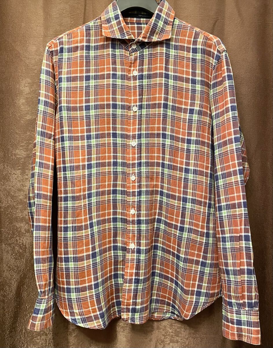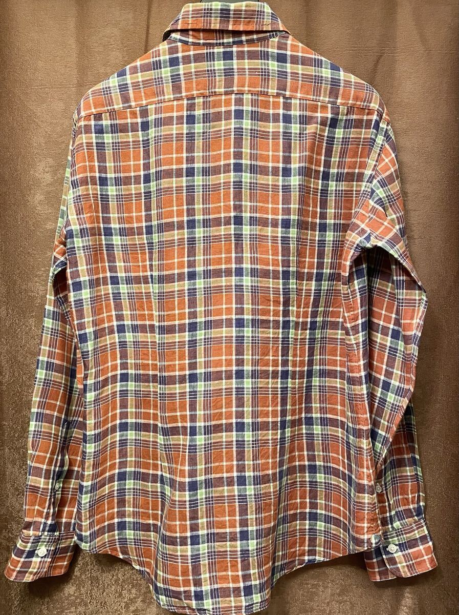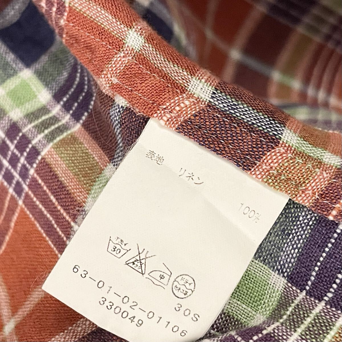 リネンシャツではあまり見かけないオレンジをベースにしたチェック柄がオシャレなおすすめの一品です。