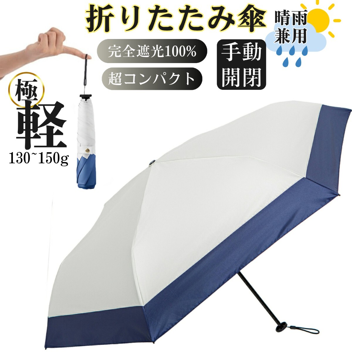 日傘 折りたたみ傘 超軽量 130g-150g 折り畳み傘 uvカット 100% 遮光 折り畳み コンパクト 小さい 最高レベルの紫外線対策 日焼け防止 遮光遮熱 耐風撥水 晴雨兼用 携帯便利 収納袋付き