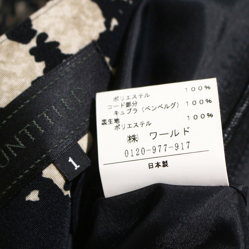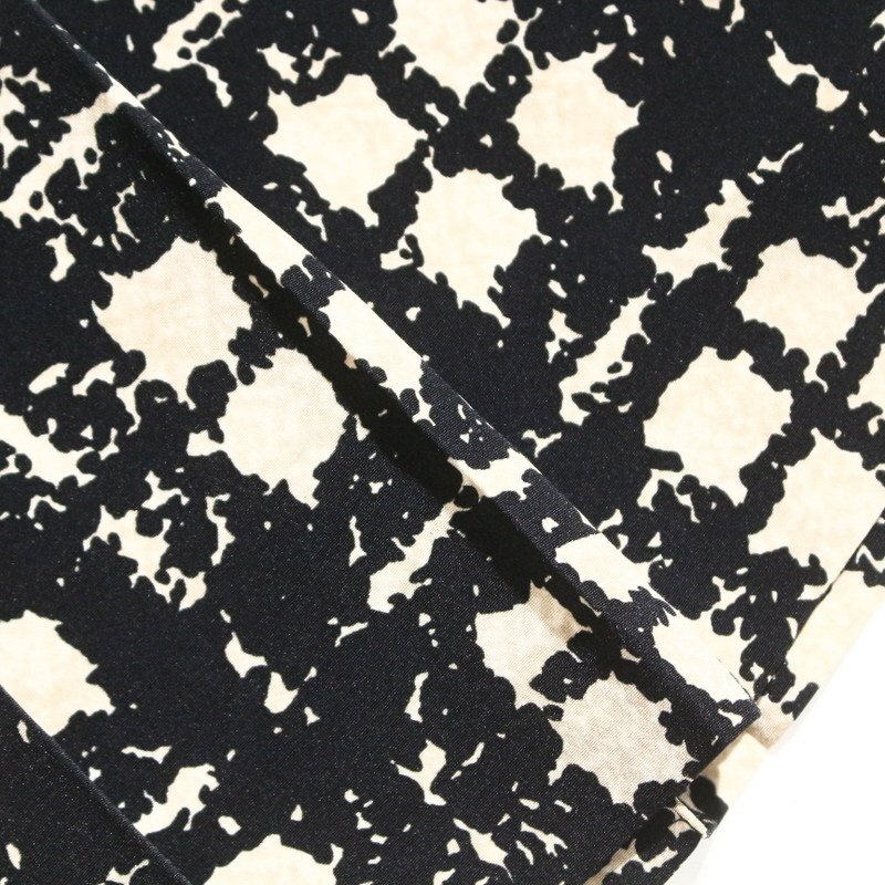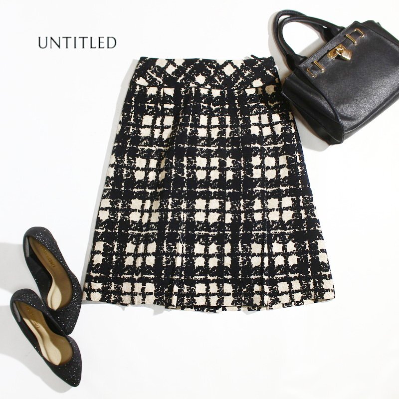 美品 アンタイトル UNTITLED 株) ワールド 合物 通年 ぼかし 格子柄 プリント Aライン フレアスカート 1 ベージュ ブラック 黒 オフィス