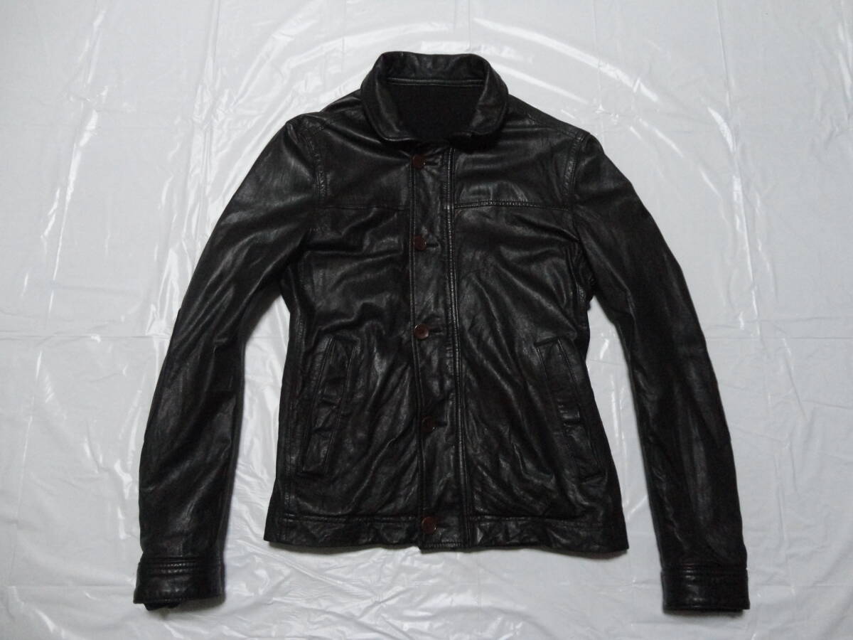 とても人気のあるデザインのわりには、Gジャンタイプのレザージャケットは少ないと思いますし、シップスの本体レーベルから発売された希少なモデルで、通常のGジャンよりも程よくシャレたデザインで、人気の黒に、多くの方に着て頂けそうなサイズ感覚(Sですが、M位のサイズ感覚です。)でもあり、滅多にオークションなどに出品されるモデルではありませんので、お探しの方や、好みの方にはオススメです。