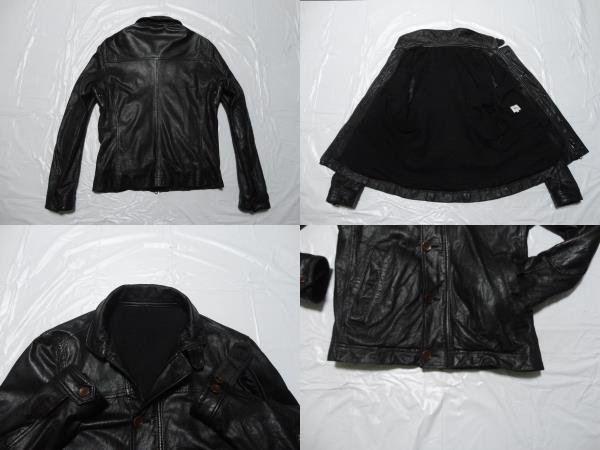 ※画像3枚目右下でも確認できますが、両袖裾のボタンがそれぞれ2個あるのですが、それぞれ1個のボタンの付け根の革に小さな破れがありましたので、その周辺を接着剤で固めて修理済みです。その周辺が硬くなっていますが、ボタンに隠れて見えない部分ですし、触らなければ判らないと思います。