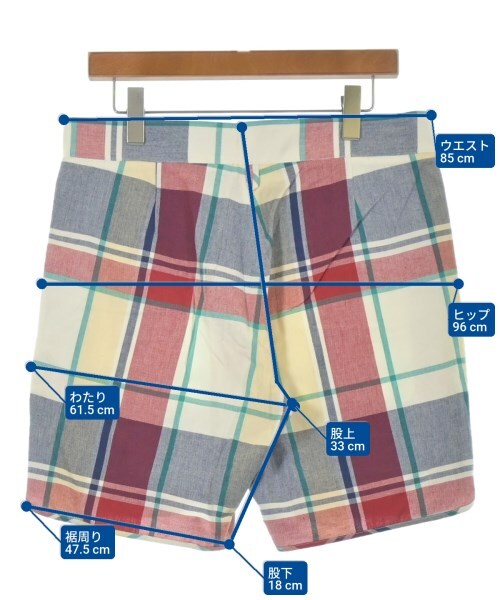 | ウエスト:85cm,裾周り:47.5cm,ヒップ:96cm,わたり:61.5cm,股上:33cm,股下:18cm |