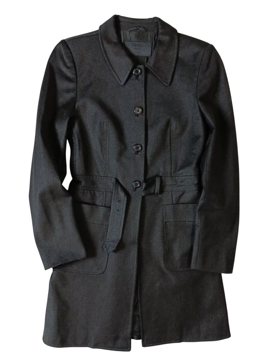 (D) PRADA プラダ ポリエステル ロングコート 40 ブラック