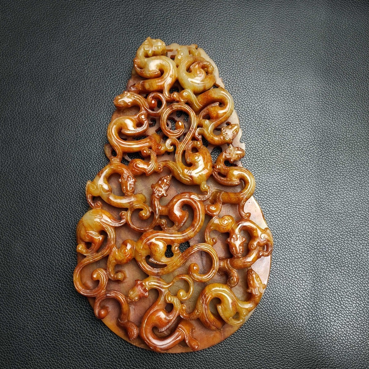 【瓏】和田玉 高古玉彫 魑龍 玉璧一対 漢代 極細工 手彫り 置物擺件 中国古賞物 古美術 蔵出