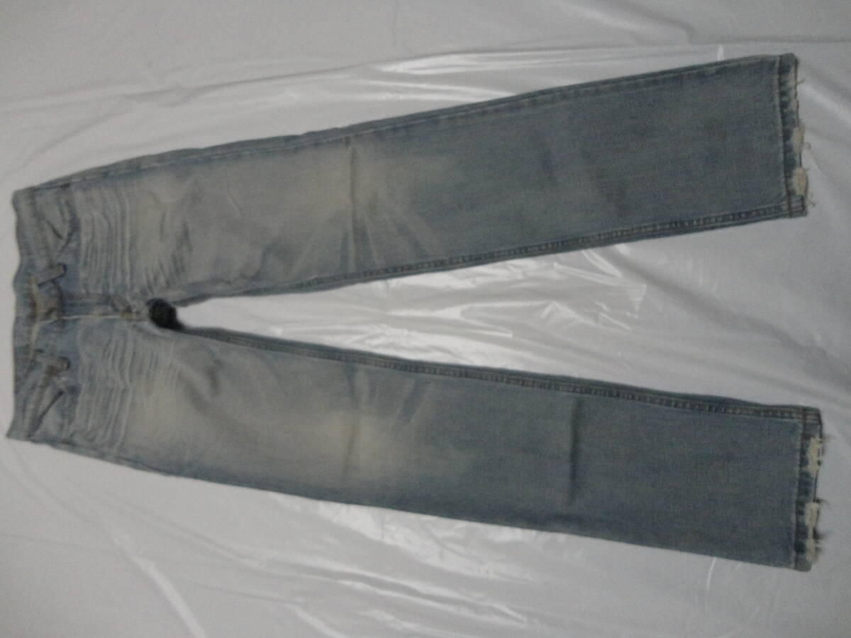 色=薄いブルーのユーズド加工&ダメージ加工(裾やポケットのフチ)