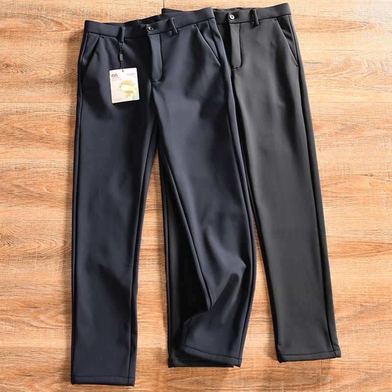 Y6533-M ブラック 新品 ストレートパンツ ウール混 スラックス 秋冬 防寒 厚手 ノーアイロン ストレッチ メンズ ビジネス カジュアル