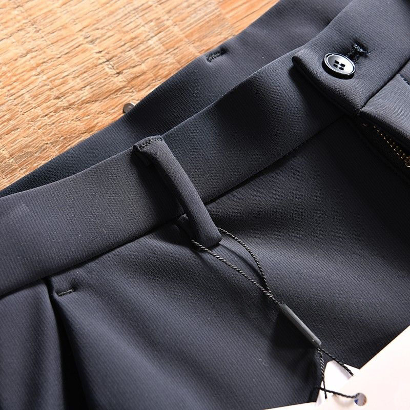 ビジネスにもカジュアルにも対応できる、シンプル&上品なスラックスデザイン。