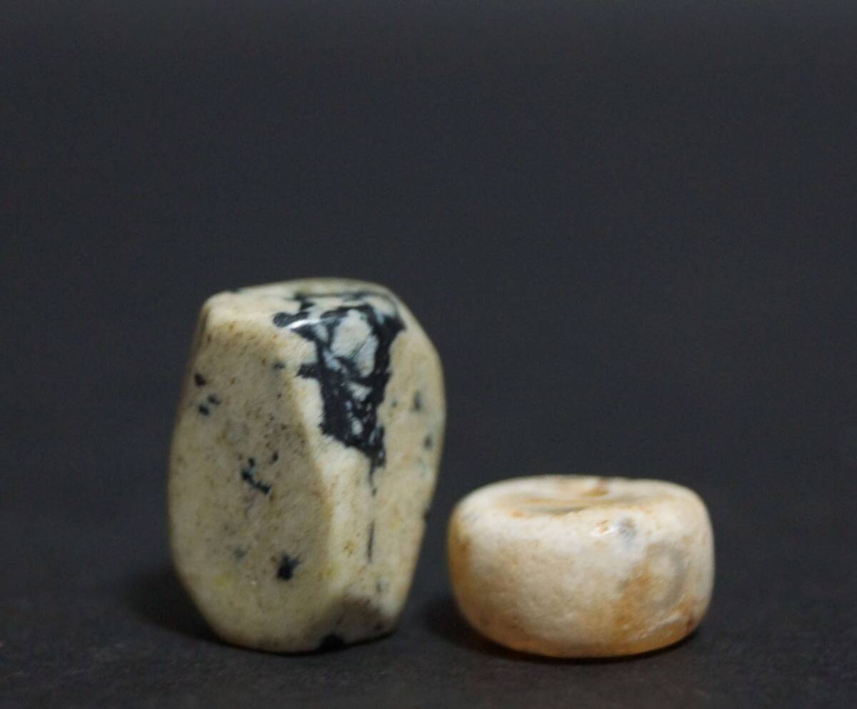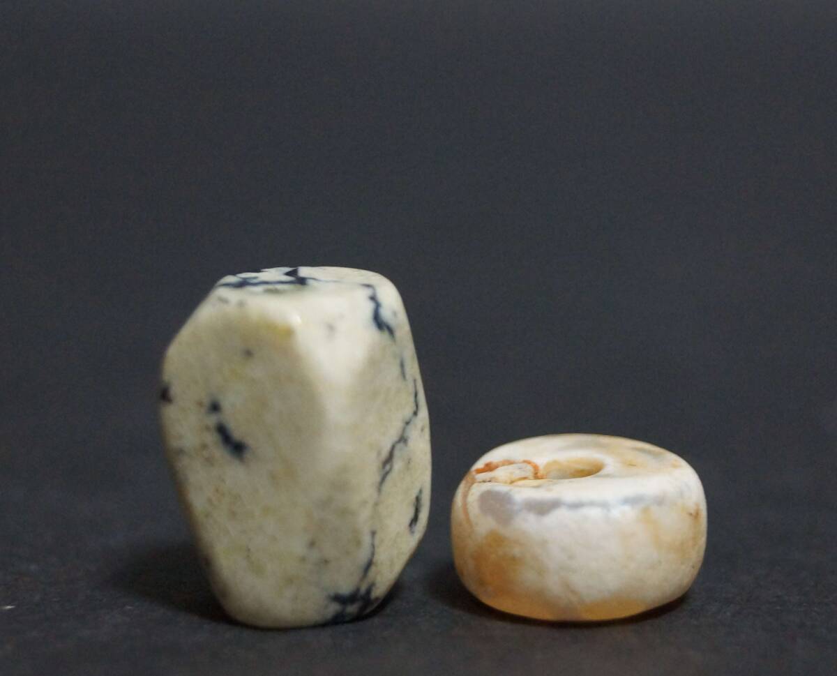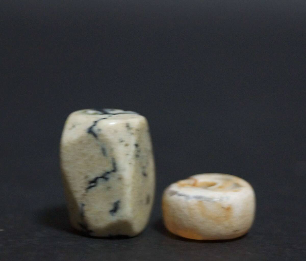 【寂】オールド西アジア 風化 メノウ 瑪瑙(2個) 根付 緒締玉 提げ物 装飾品☆時代物☆s70926