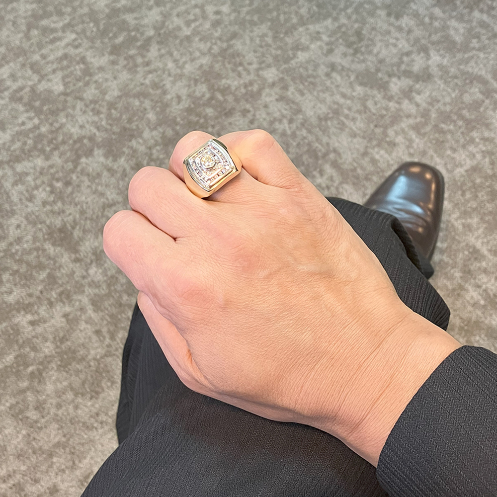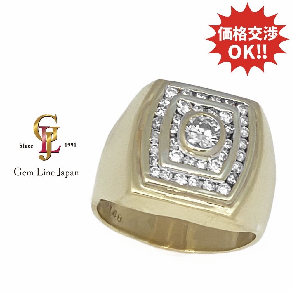 商品名 | K18 16.50g ダイヤモンド 1.40ct メンズ 印台 リング | ||