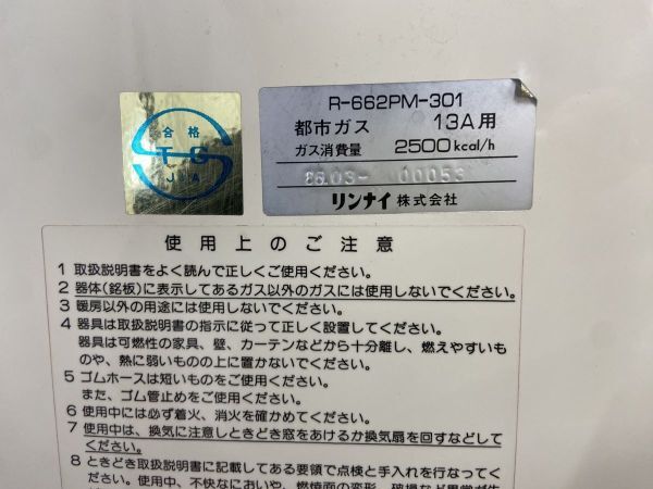 【M926】中古 昭和レトロ Rinnai リンナイ 東邦ガス ガスストーブ 都市ガス用 RSS-6GD 暖房器具 R-662PM-301 /ストーブ ガス器具 b | ||