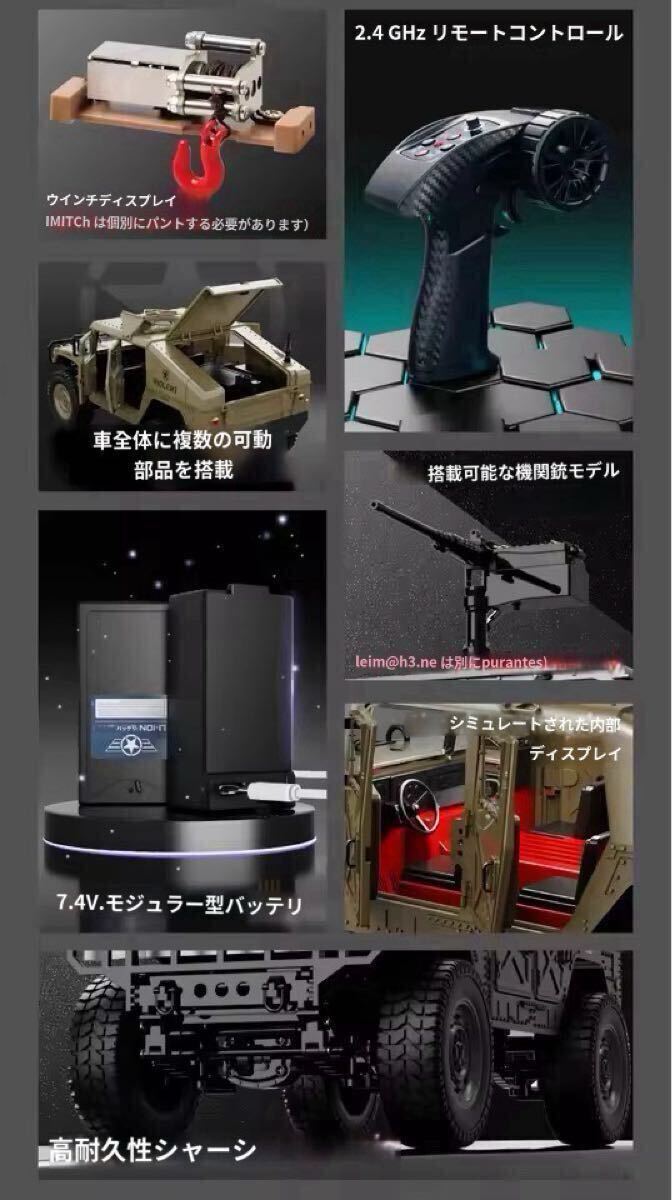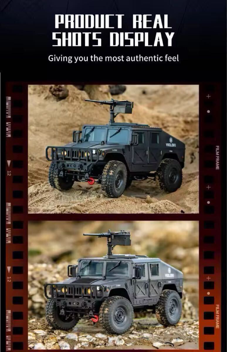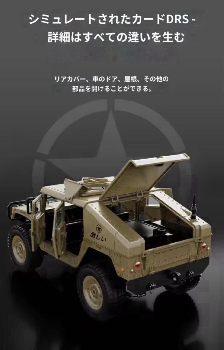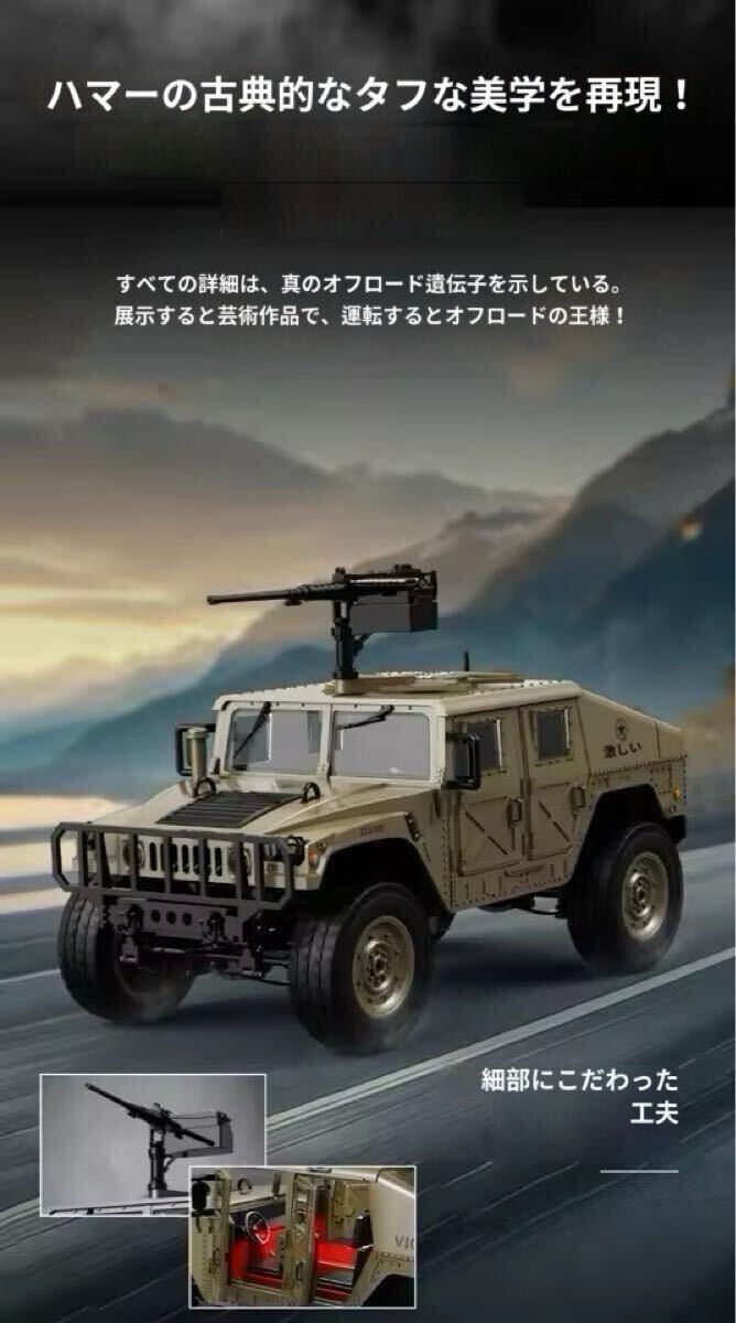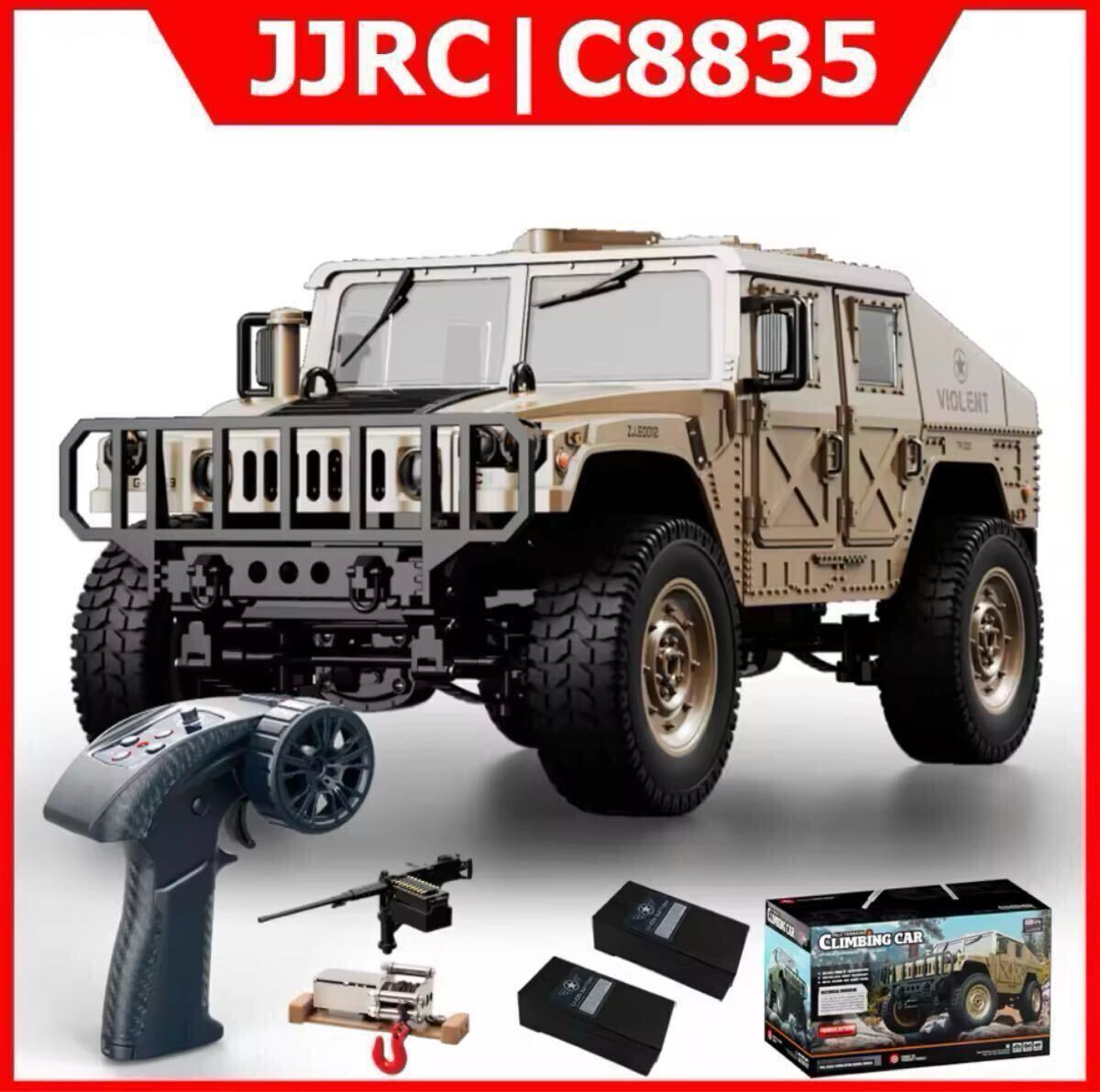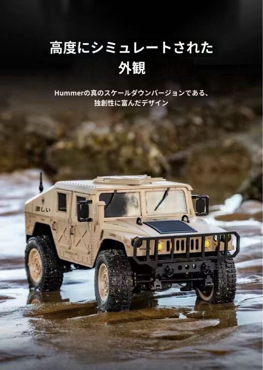 JJRC C8835 1/16スケール ジープ RCカーは、単なるラジコンカーではありません。RC愛好家とコレクターの両方を魅了する、細部までこだわったスケールモデルです。軍用車両ハンヴィーの頑丈な外観にインスピレーションを得たこのジープは、精巧に作られた外装、リアルな質感、そして実車のエッセンスを捉えたスケールダウンされたディテールにより、比類なき本物らしさを実現しています。