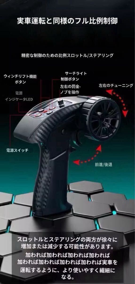 1/16スケールのこのジープは、コンパクトなので扱いやすく、迫力のある存在感も兼ね備えています。