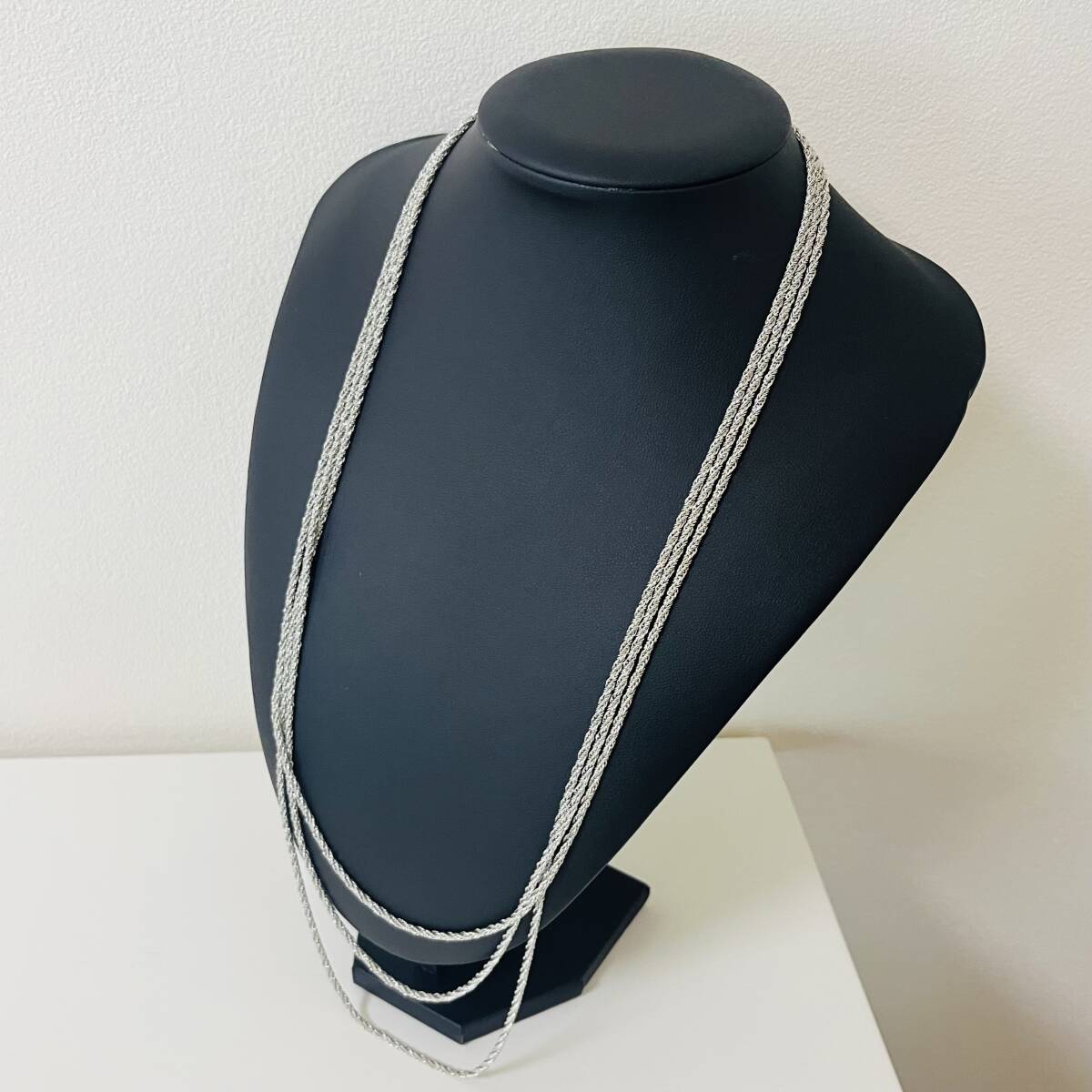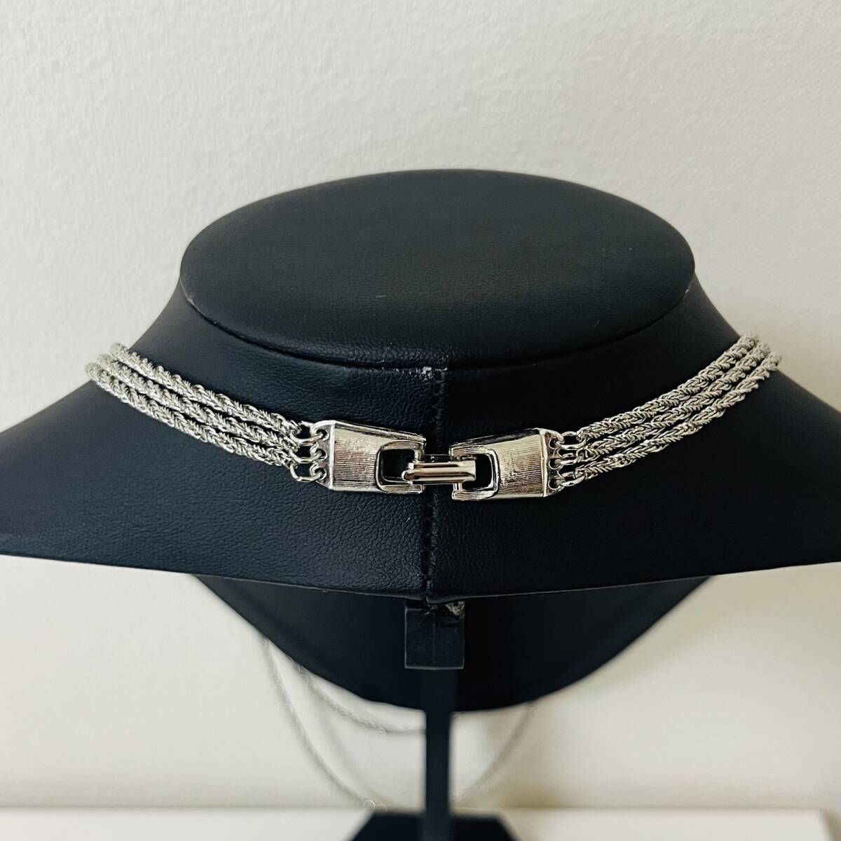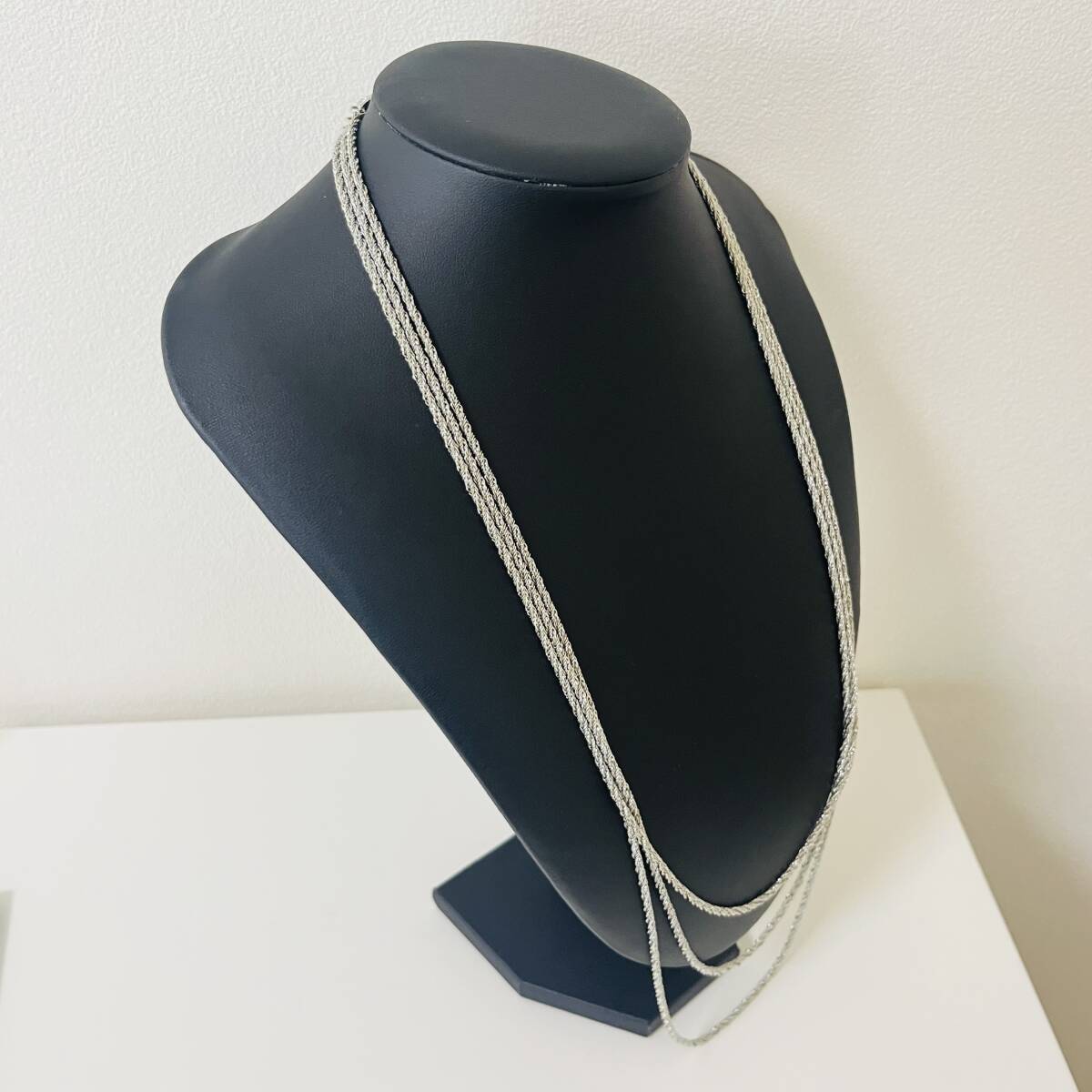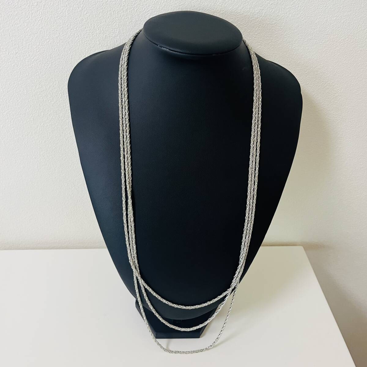 445 アンティーク ビンテージ コスチュームアクセサリー ネックレス 未使用保管品! シルバーカラー 多重 三連 ロング 海外製