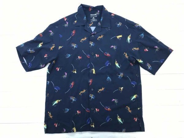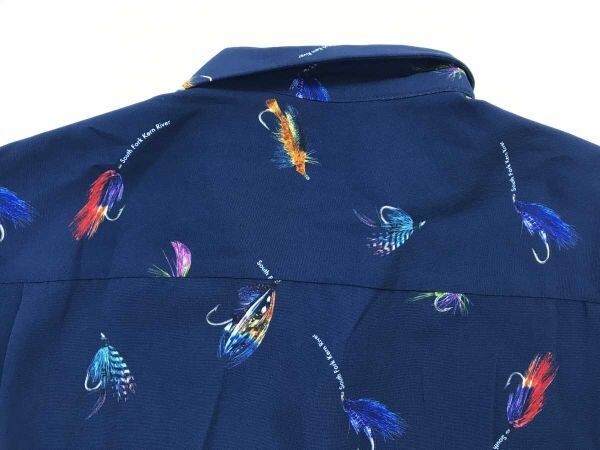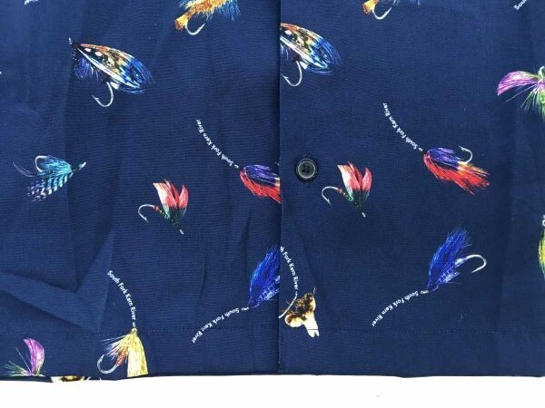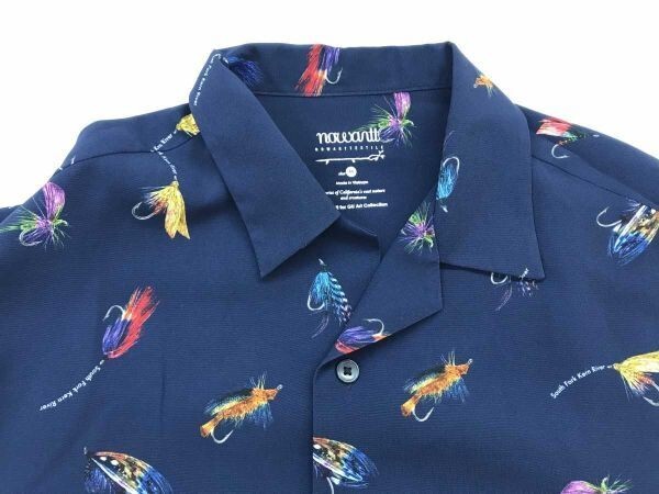 ジーユー ノワート GU nowartt アウトドア ネイチャー 釣り フィッシング ルアー総柄 オープンカラーシャツ メンズ ポリエステル100% M 紺 です。