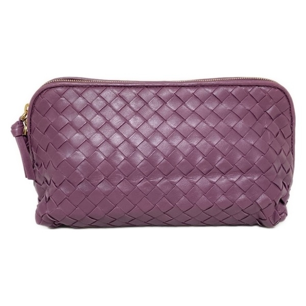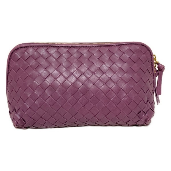 ボッテガヴェネタ BOTTEGA VENETA イントレチャート レザー パープル ポーチ