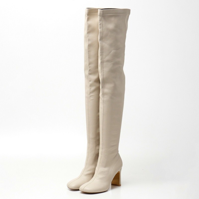 | MH4835*イタリア製 STELLA MCCARTNEY ステラマッカートニー 38(24cm相当) サイドジップ ストレッチ ニーハイブーツ 靴 ベージュ | |||