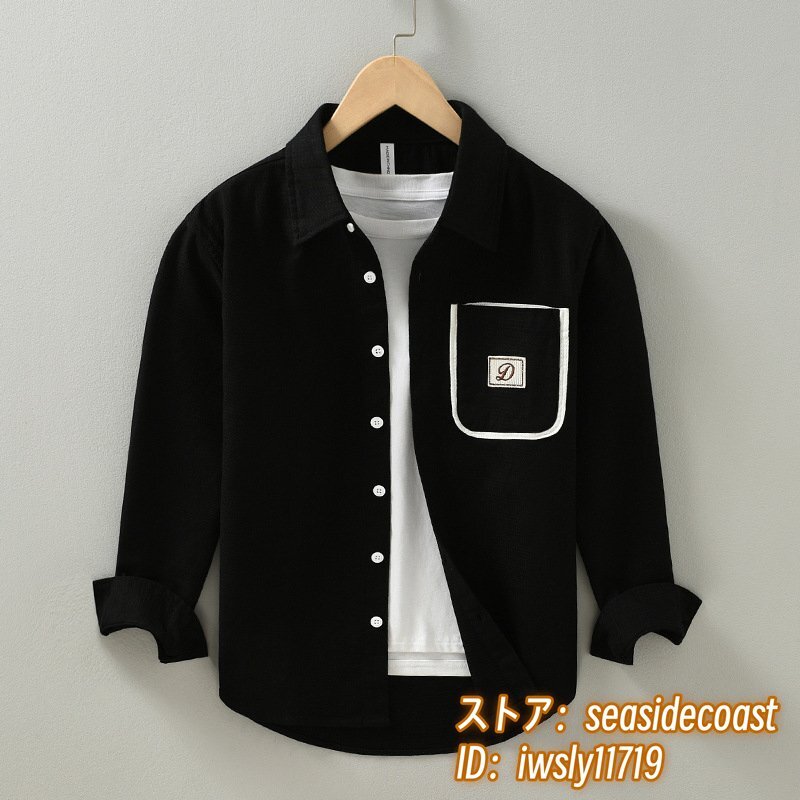 極美品★長袖シャツ メンズシャツ 柔らか ワイシャツ ハイセンス 春秋シャツ 切替 Tシャツ カジュアル 心地良し お洒落 三色 ブラック XL
