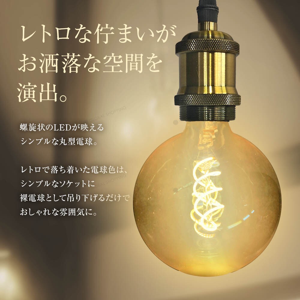LED電球 レトロ インテリア おしゃれ E26 60W 電球 LED 照明 非調光 省エネ 間接照明 アンティーク照明 ボール 飴色 暖温色 2700k