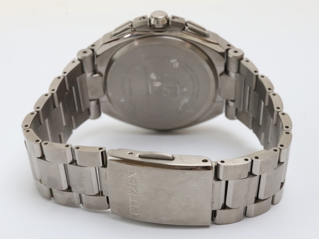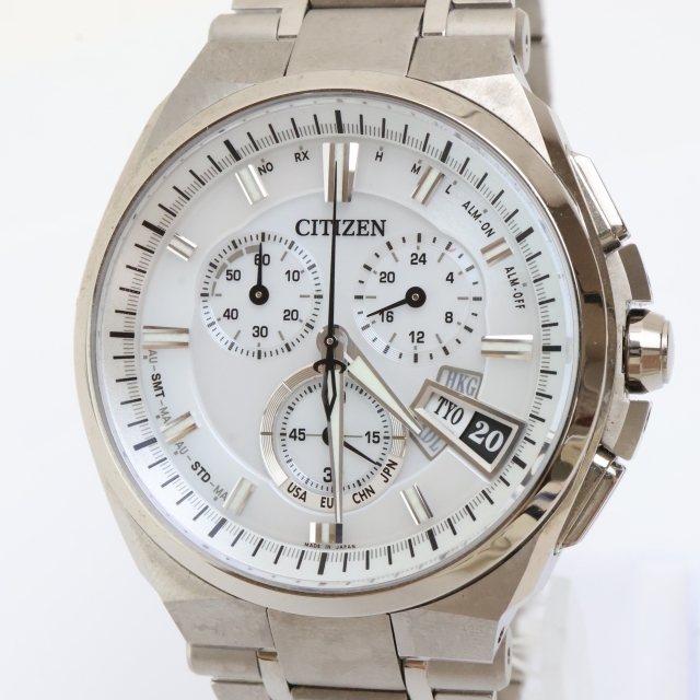 | 2509-633 DS シチズン アテッサ チタン H610-T018050 電波ソーラー 腕時計 美品 CITIZEN 日付 クロノグラフ 白文字盤 純正ブレス | |||||||