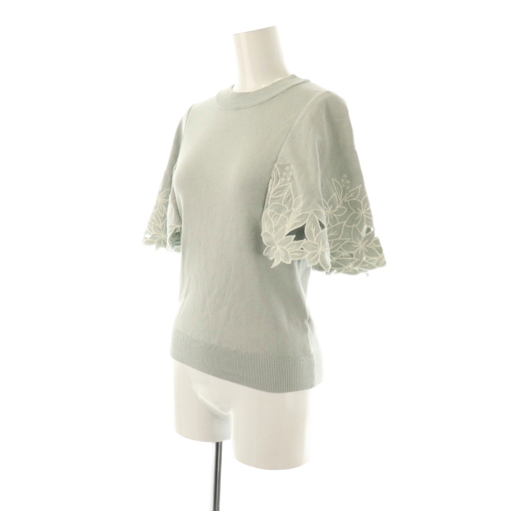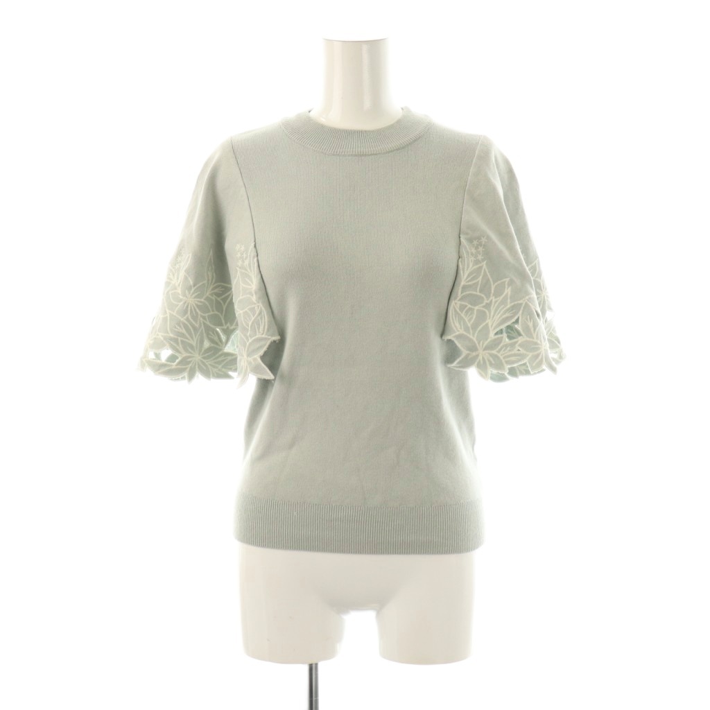 ノエラ Noela フラワー刺繍ニット セーター 半袖 F 緑 グリーン /AT ■OS レディース