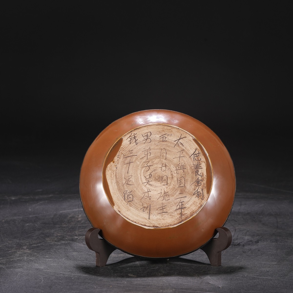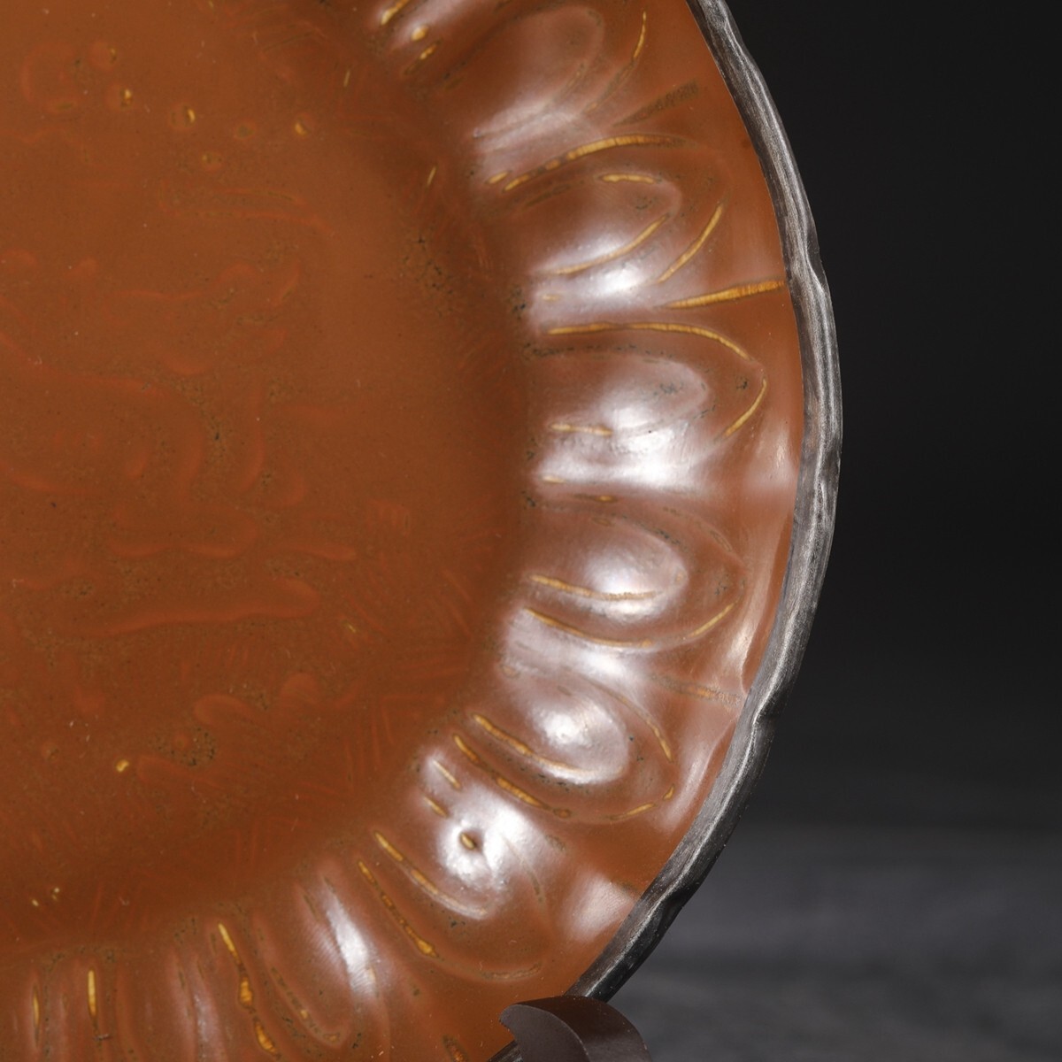 「宋 定窯 陶磁器 紫金釉暗刻龍紋 銀口大盤」染付 置物 擺件 古賞物 中国古美術 旧蔵出