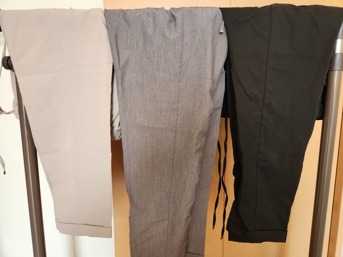ブラック、グレー、ベージュのお色を用意しました。タンス収納で着用してないパンツです。
