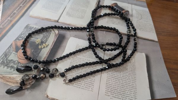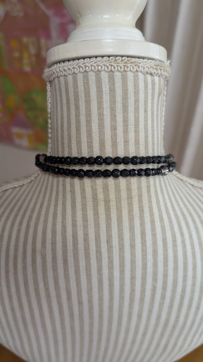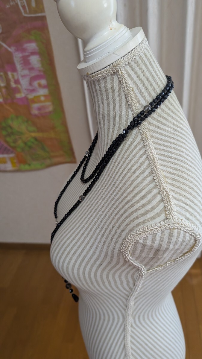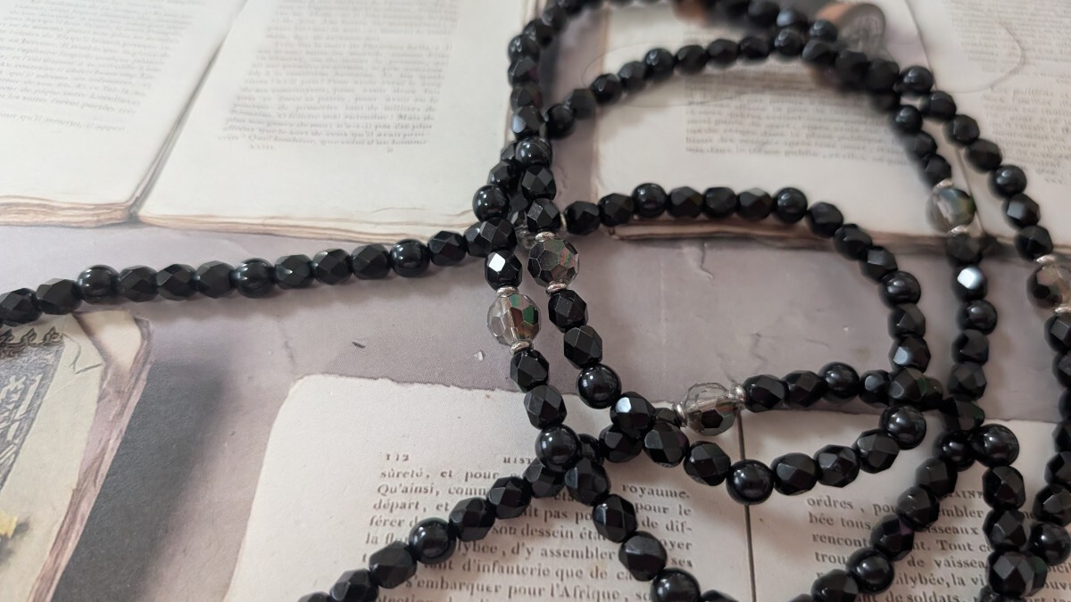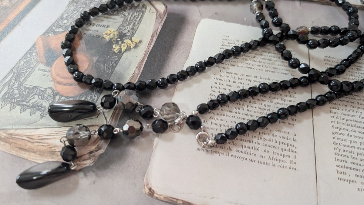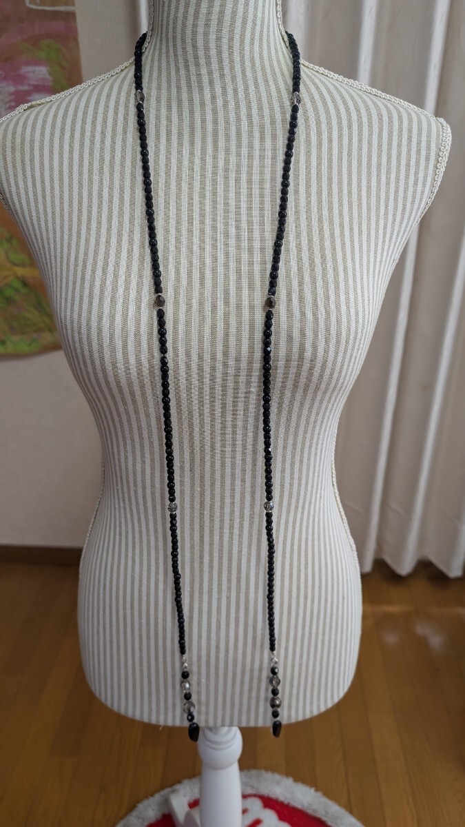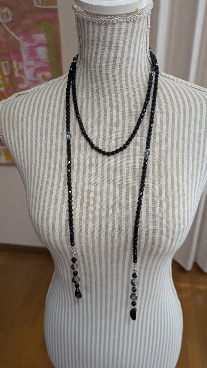 多面カット黒ビーズ ロングネックレス アレンジ可能