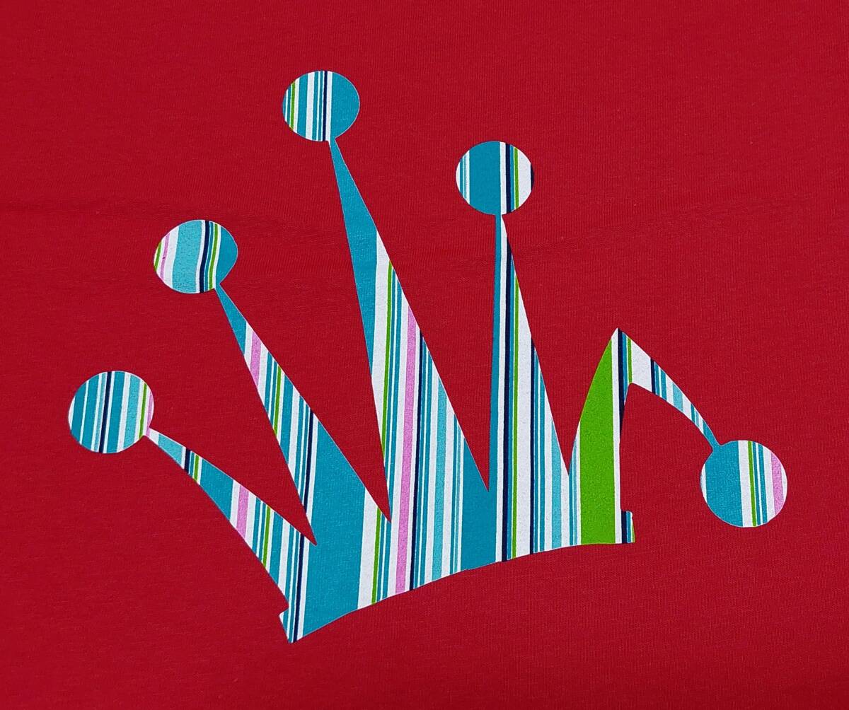 バック右下にはクラウンがカラフルなストライプ柄でプリントされております!