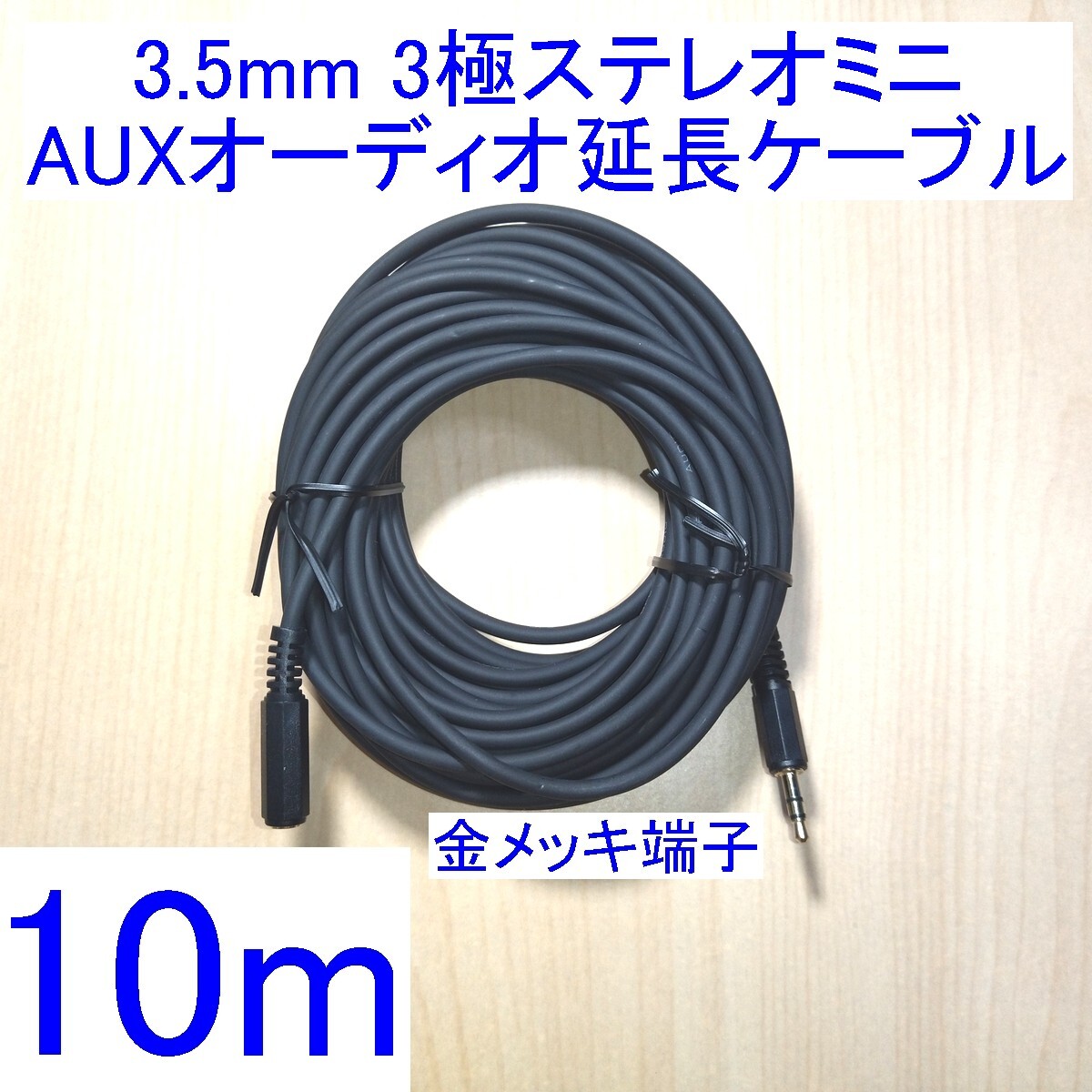 3.5mm 3極ステレオミニプラグ AUXオーディオ延長ケーブル/延長コード 10mです。