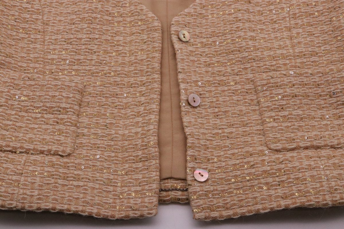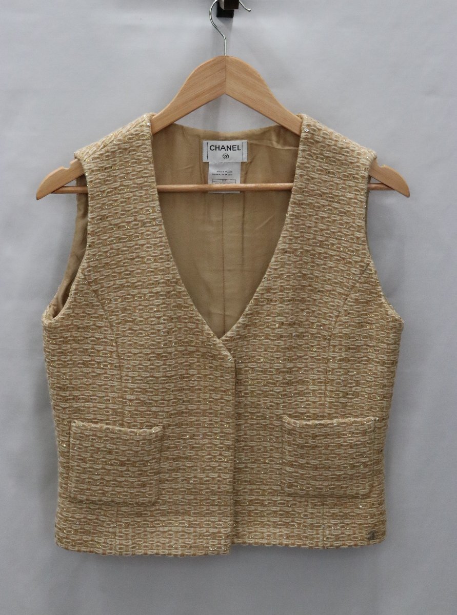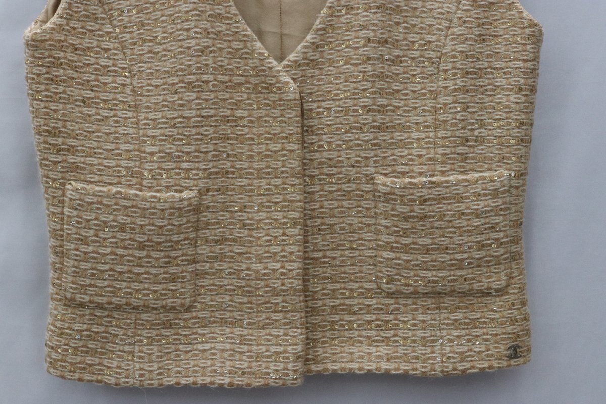 | CHANEL シャネル ベスト ツイード ベージュ スパンコール ココマーク シルク ウール 00A P16472 サイズ40 レディース | ||