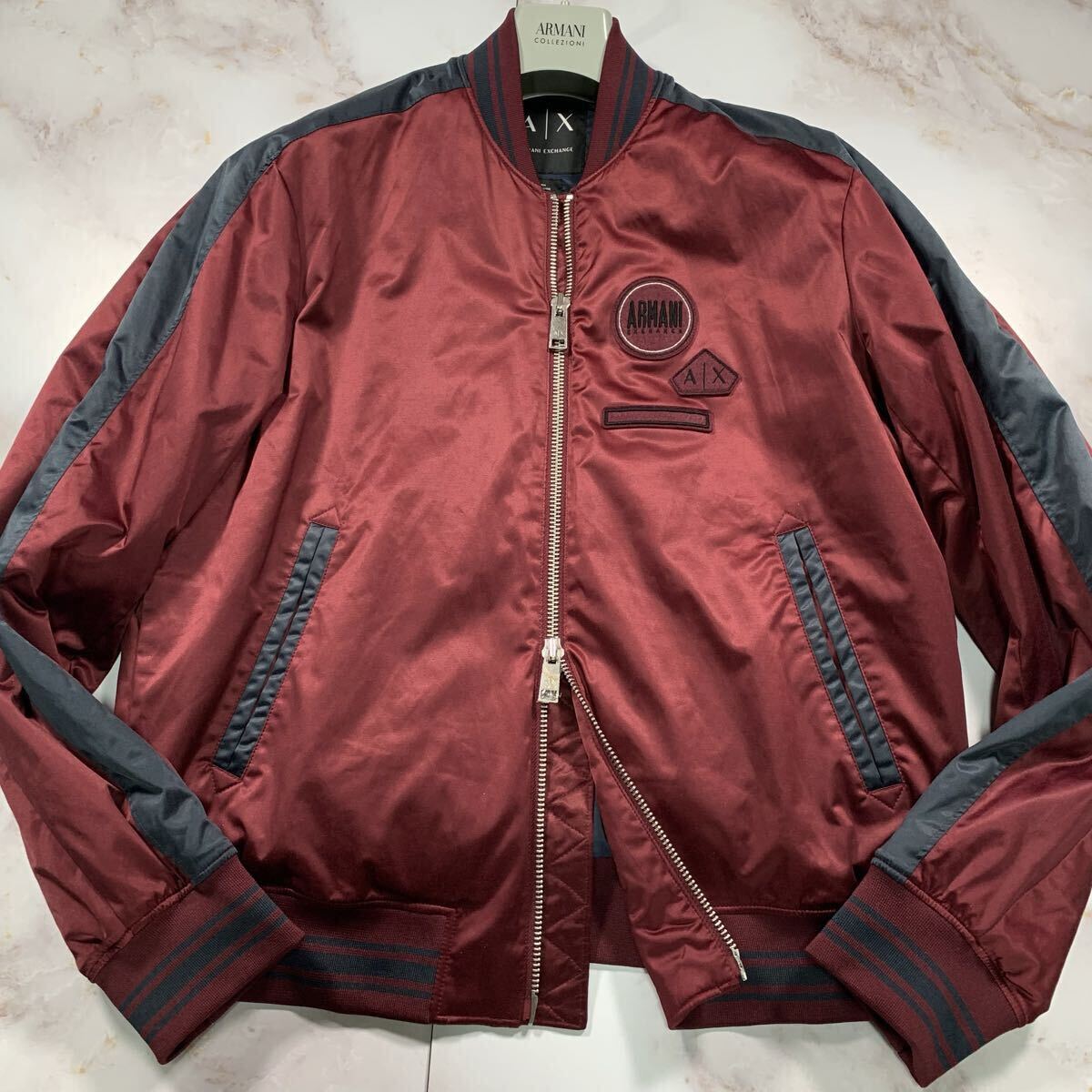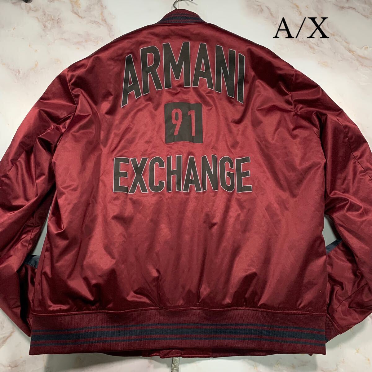 Size.XL●ARMANI EXCHANGE アルマーニエクスチェンジ デカロゴ バックプリント ボンバージャケット スタジャン MA-1 ダブルジップ ワッペン