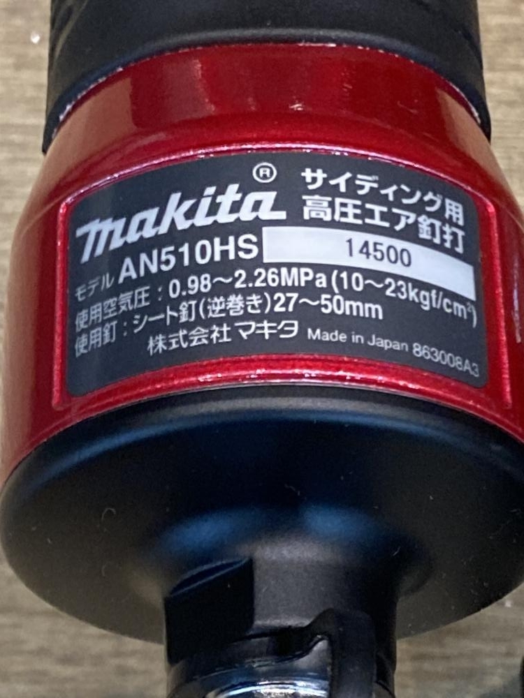 マキタ ■商品名 サイディング用高圧エア釘打ち機 ■型番 AN510HS |