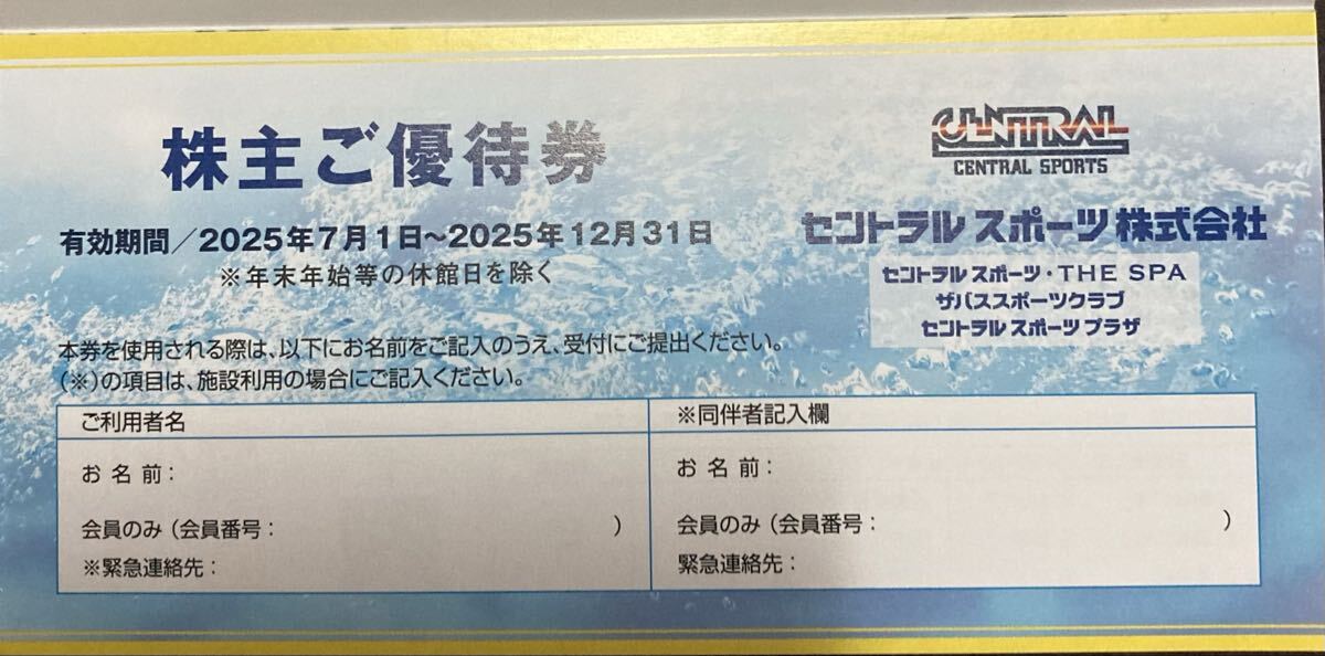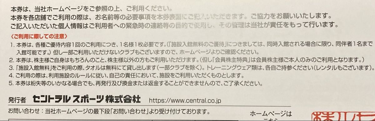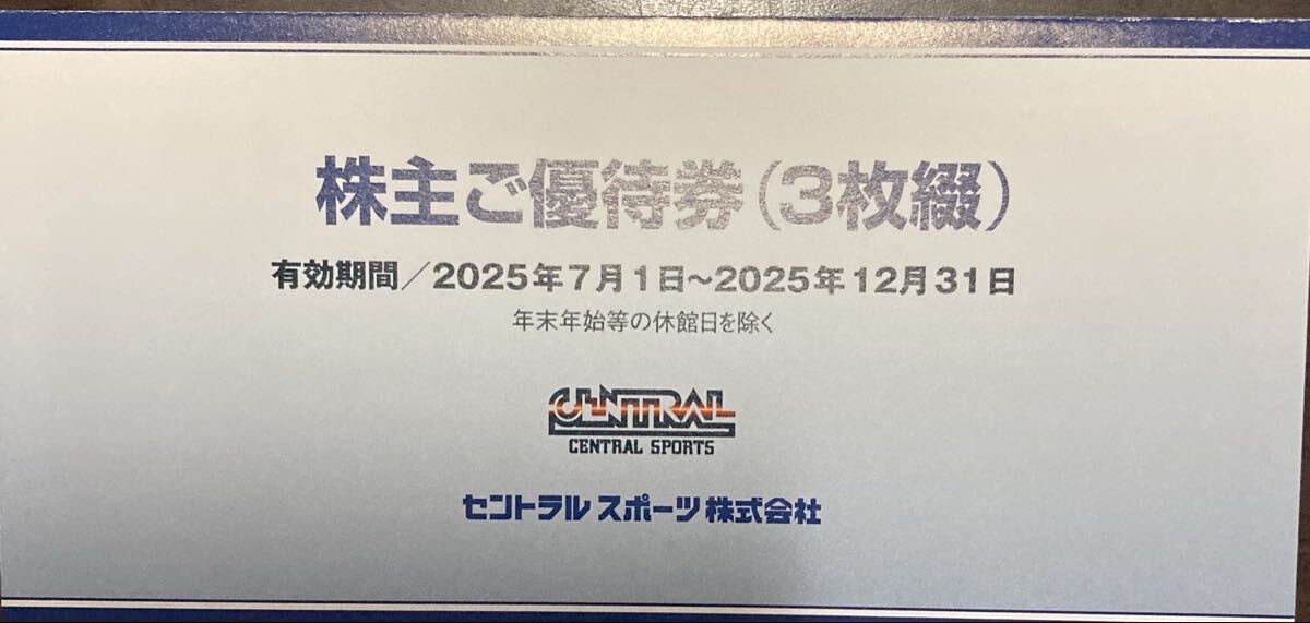 セントラルスポーツ株主優待券 3枚です。
