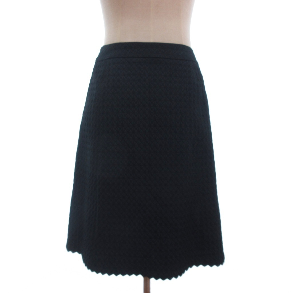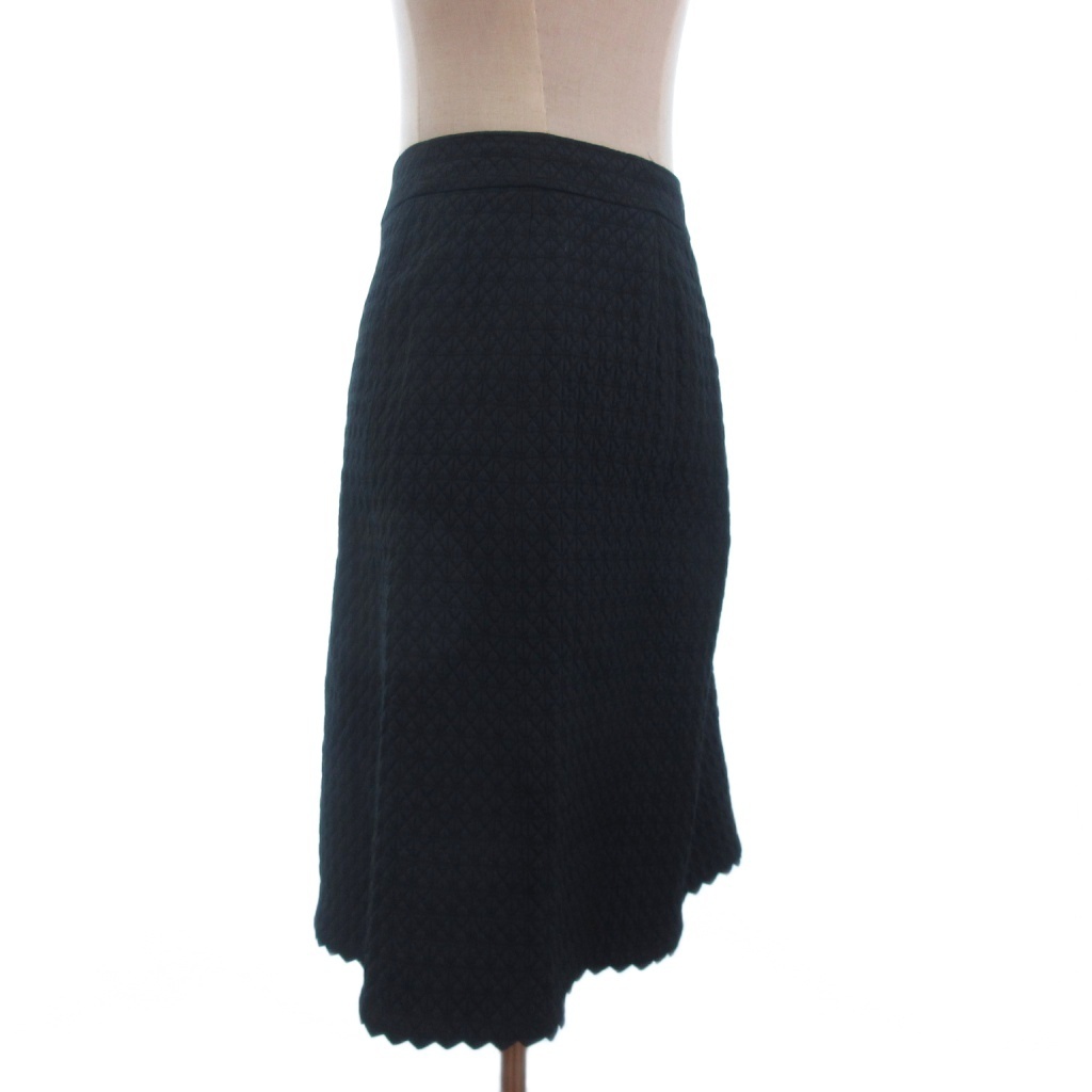 レリアン Leilian 美品 フレアスカート ひざ丈 総刺繍 サイドジップ 紺 ネイビー 9 レディース