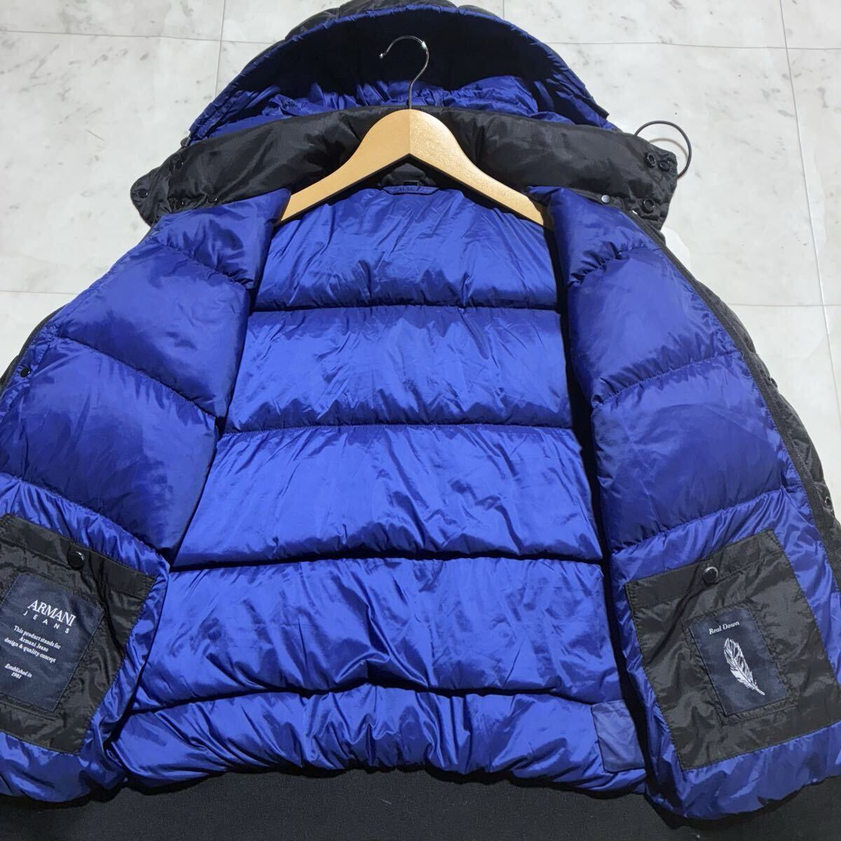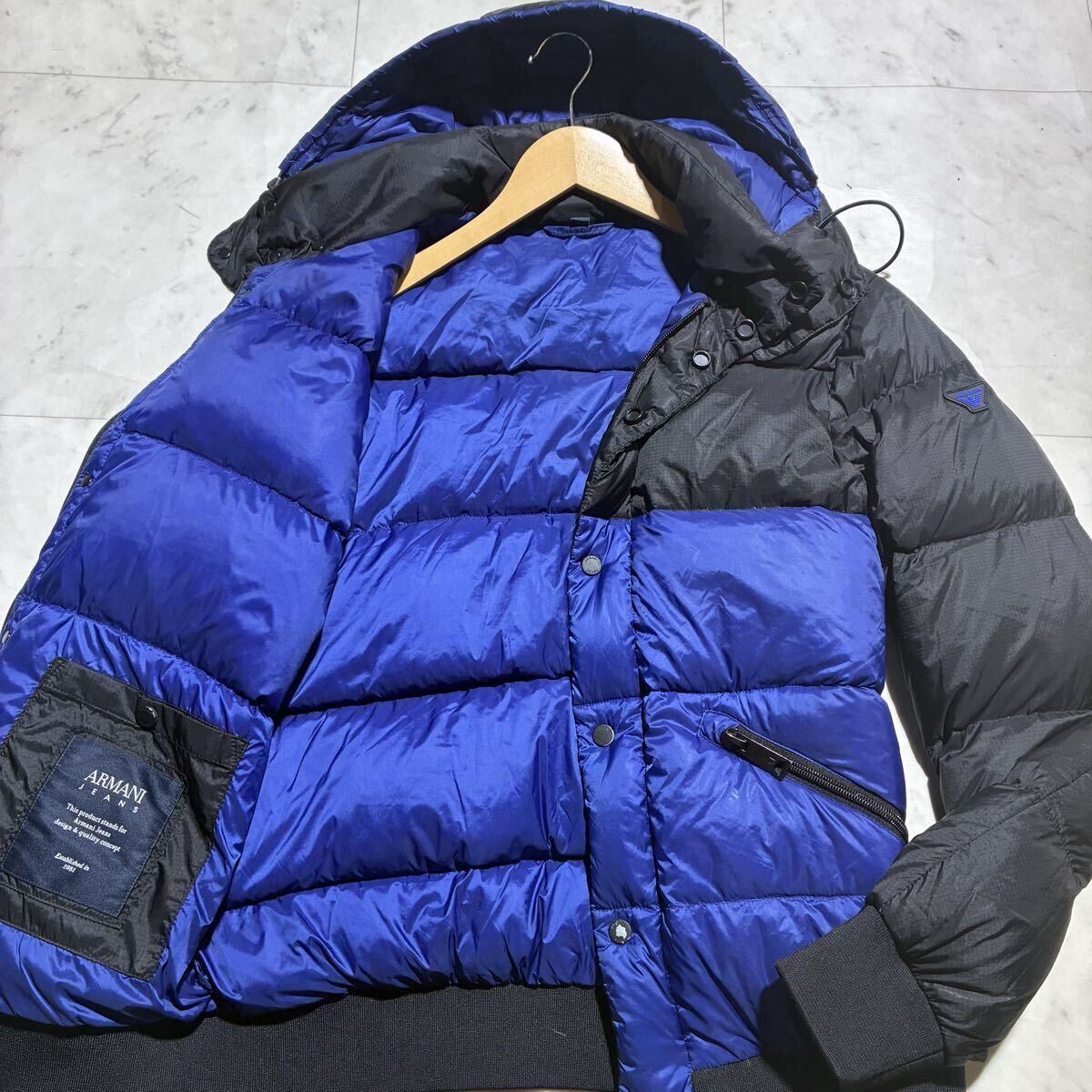 極暖の極み!!!選び抜かれたREALDOWN!!!【 ARMANI JEANS アルマーニジーンズ】ボリュームMAX!!!唯一無二!!!ダウンジャケット 黒 青
